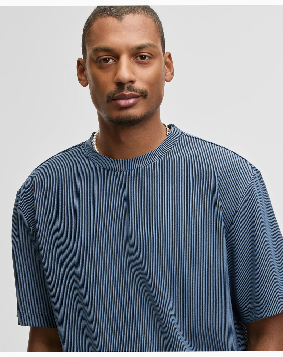 Mode of One adds texture and pattern to a crewneck T-shirt with this relaxed rib-knit style. ABOUT THE BRAND: Mode of One is designed for the individual who sees style as a powerful tool for self-expression.