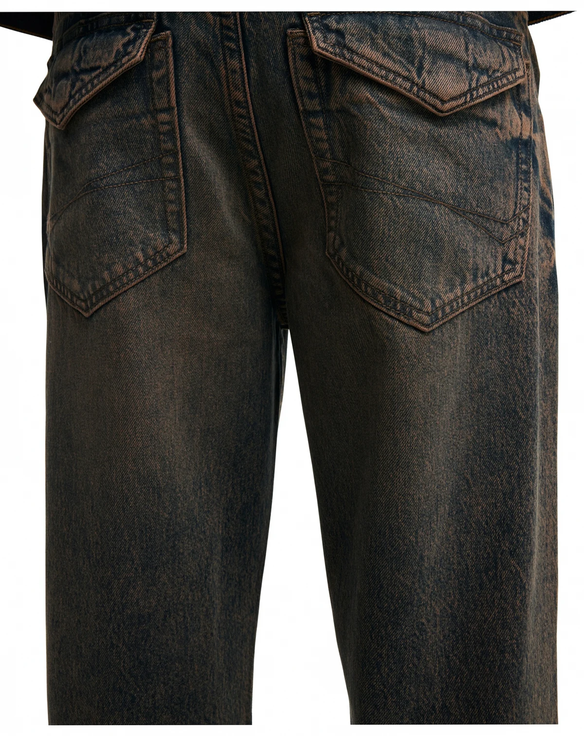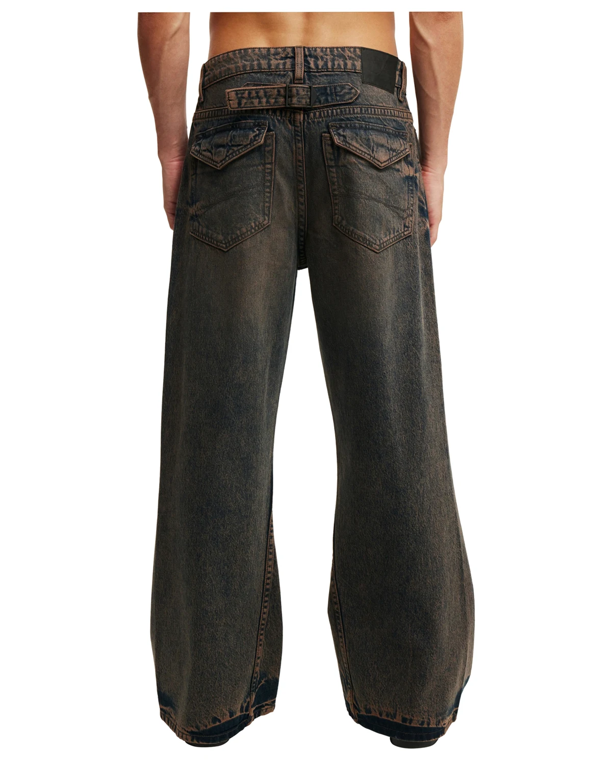 Relaxed fit Jean; Baggy fit with boot cut leg; Approximate model height is 6'1" and he is wearing a size 32; Approximate inseam: 32.2"