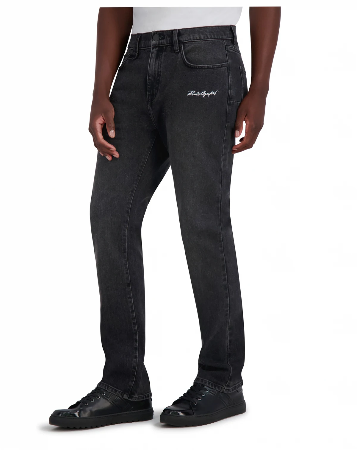Achieve a classic look with these jeans by KARL LAGERFELD PARIS, featuring a mid-rise bootcut silhouette and five-pocket styling. Light stretch provides a comfortable, tailored feel.