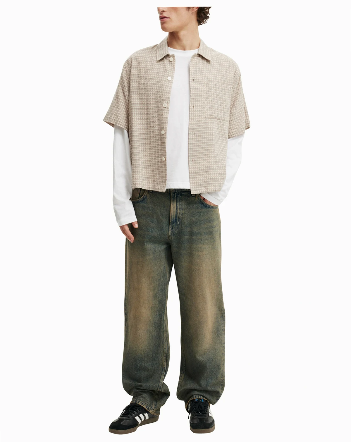 Comfortable relaxed baggy fit; Approximate model height is 6'1" and he is wearing a size 32