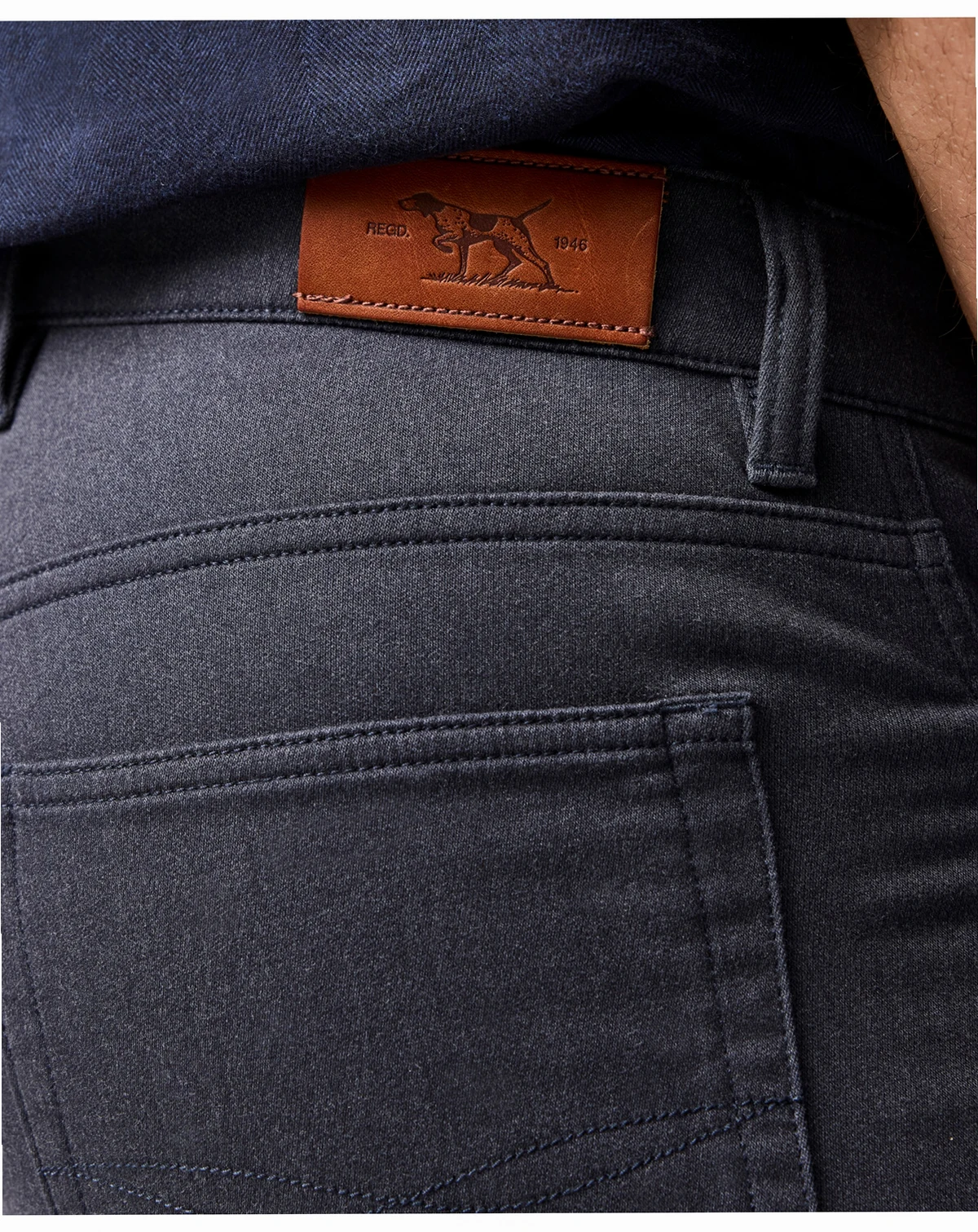 A straight fit jean in a Italian cotton-fabric, with a hint of stretch. The unique motion fabric provides comfort while on the move, whilst the mid-weight structure is wearable all year. Stitched with felled seams for added durability, and furnished with antique rivets and tac button.