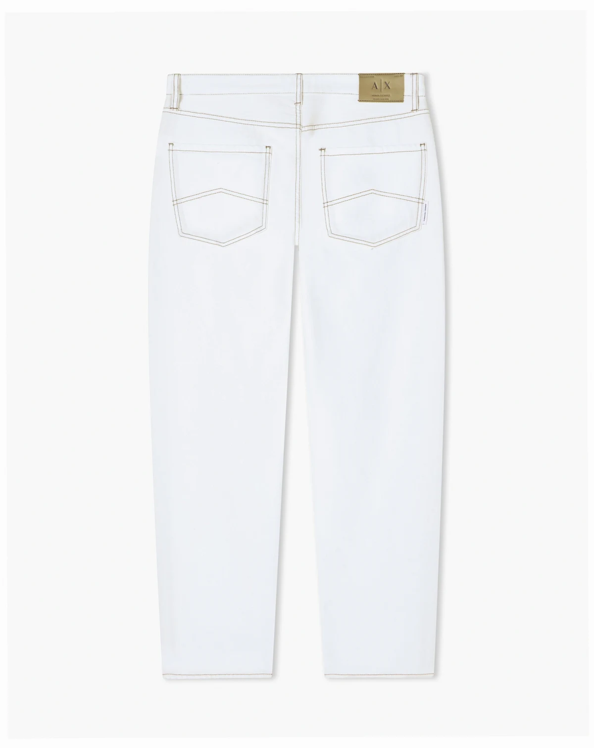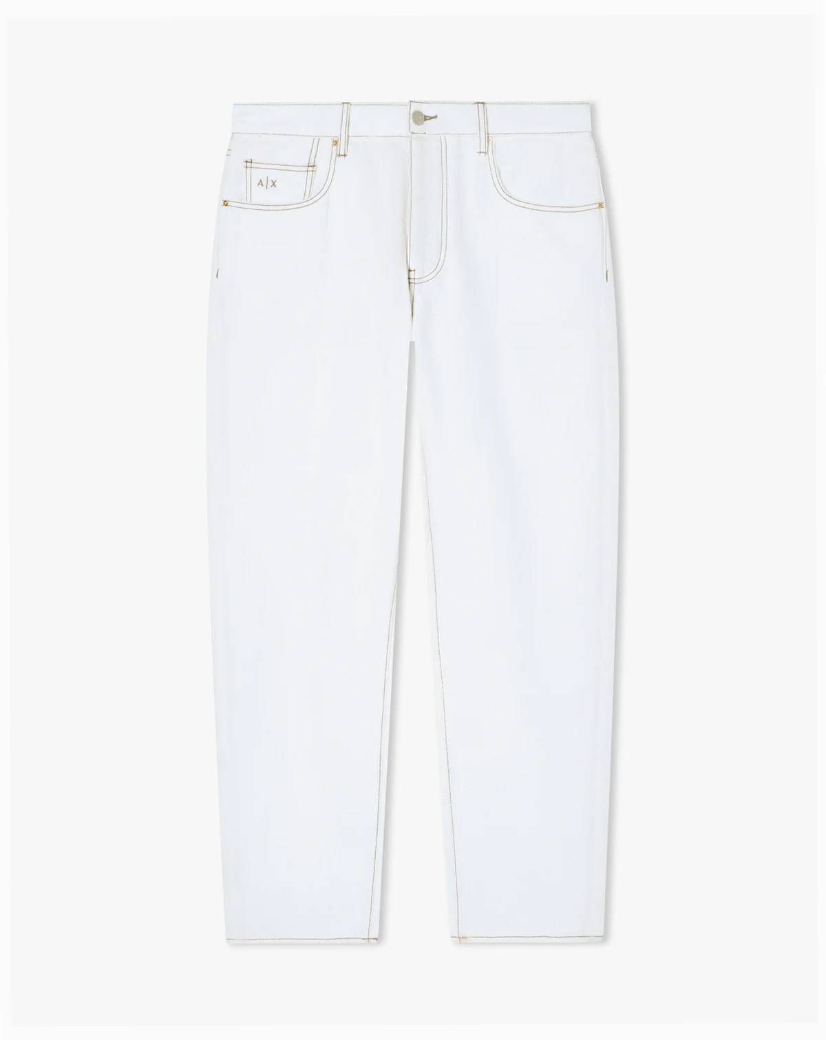Crafted from premium cotton denim, these jeans offer a relaxed yet modern silhouette with a loose tapered fit—roomier through the thighs and narrowing toward the ankle for a clean finish. The design is elevated with beige contrast stitching that adds subtle detail, while the A|X branding on the pocket delivers a signature touch of style.