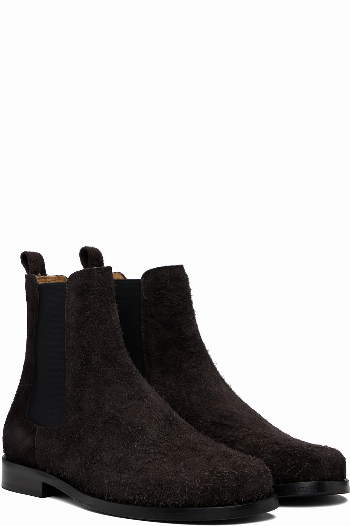 Ankle-high brushed suede boots.
