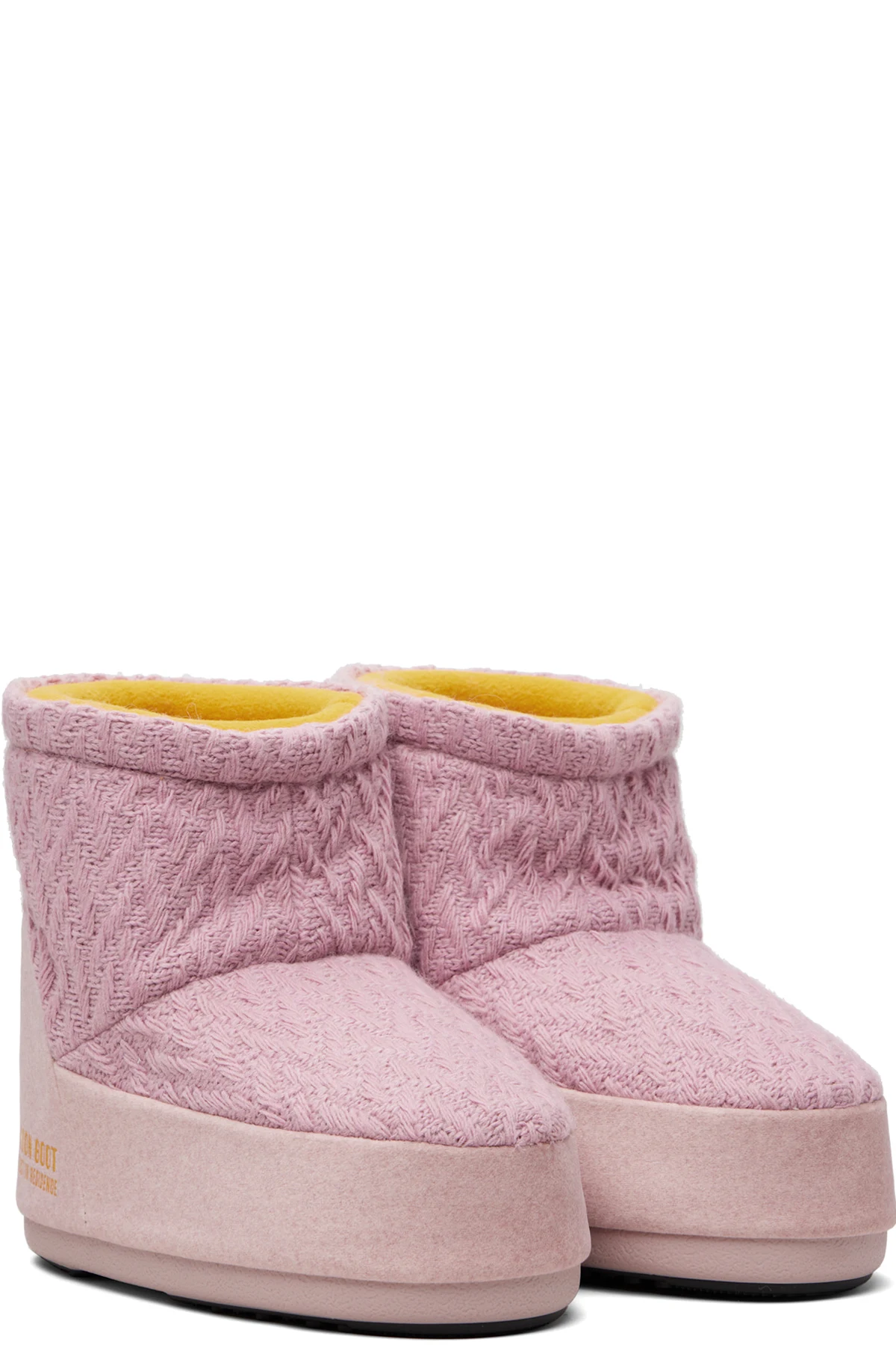 Ankle-high insulated textured knit boots.