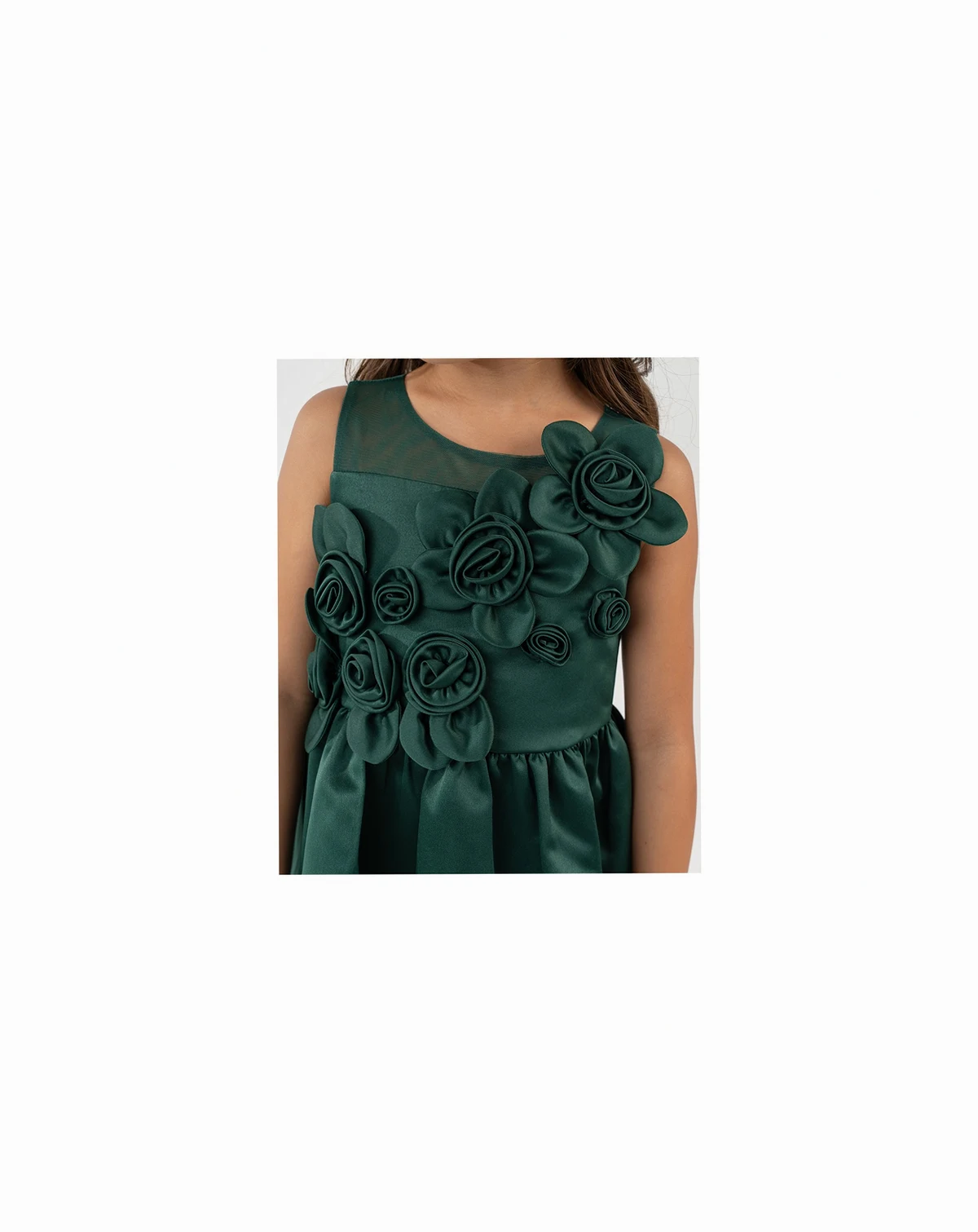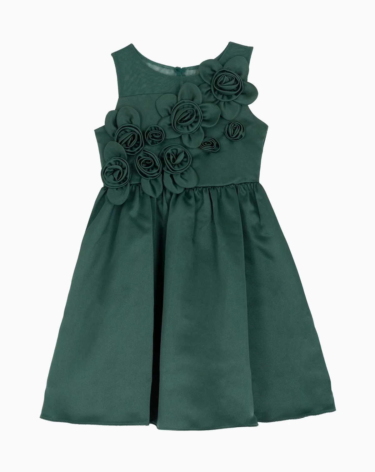 Let her step into a world of charm with this fit-and-flare dress by Rare Editions, adorned with sculpted 3D rosettes on the bodice and a delicate illusion neckline. Designed for holiday gatherings, flower girl moments, or any special celebration.