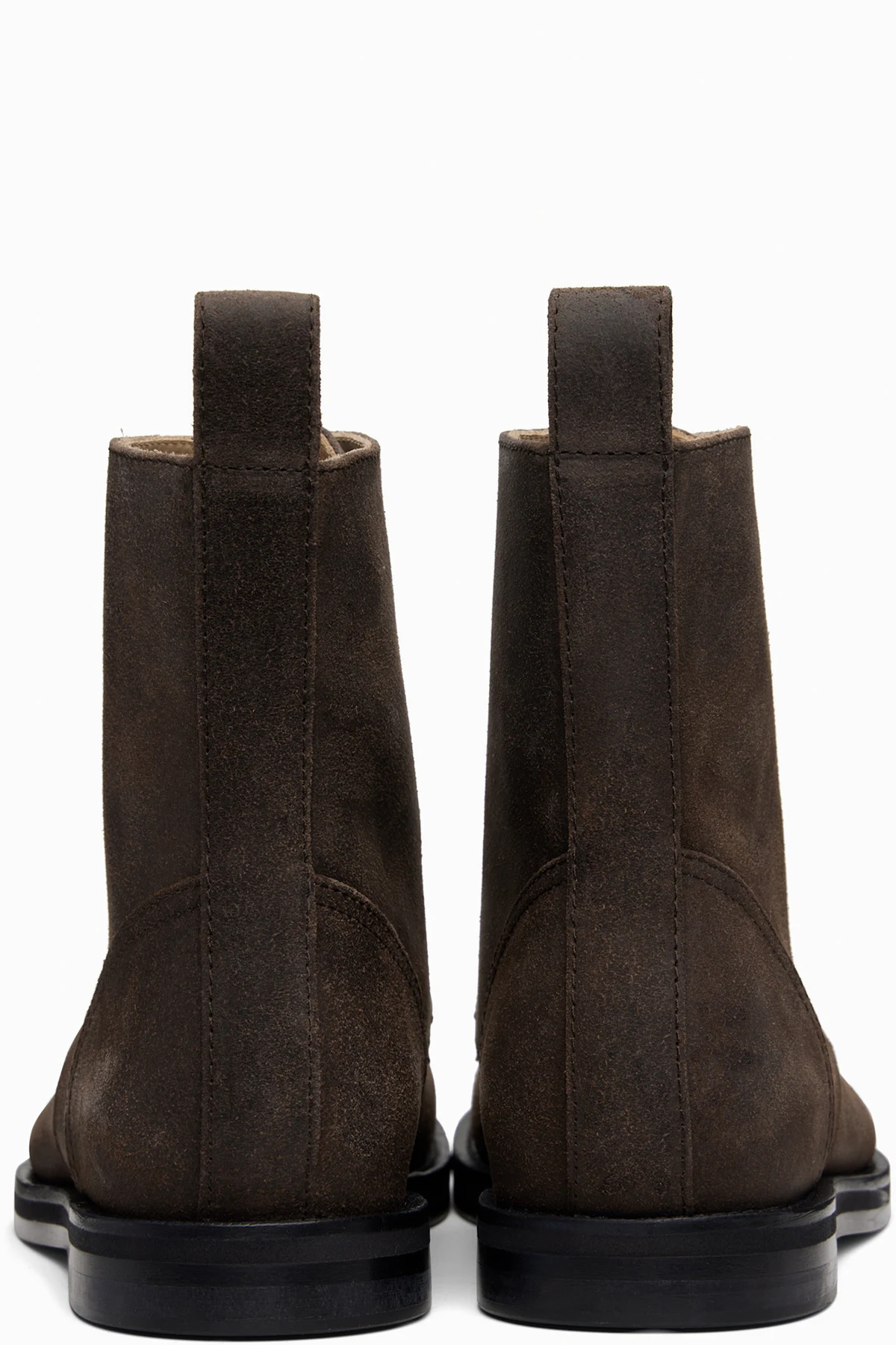 Ankle-high blistered suede boots.