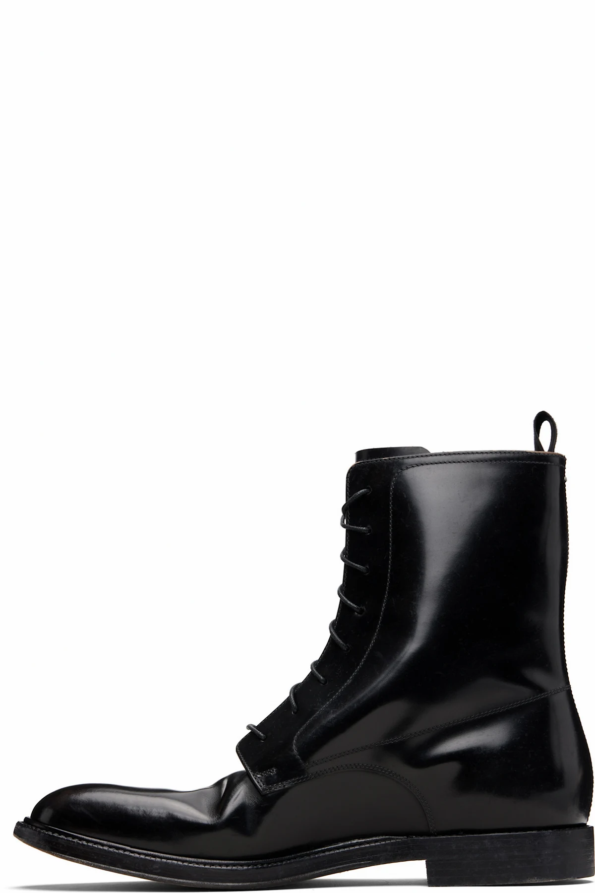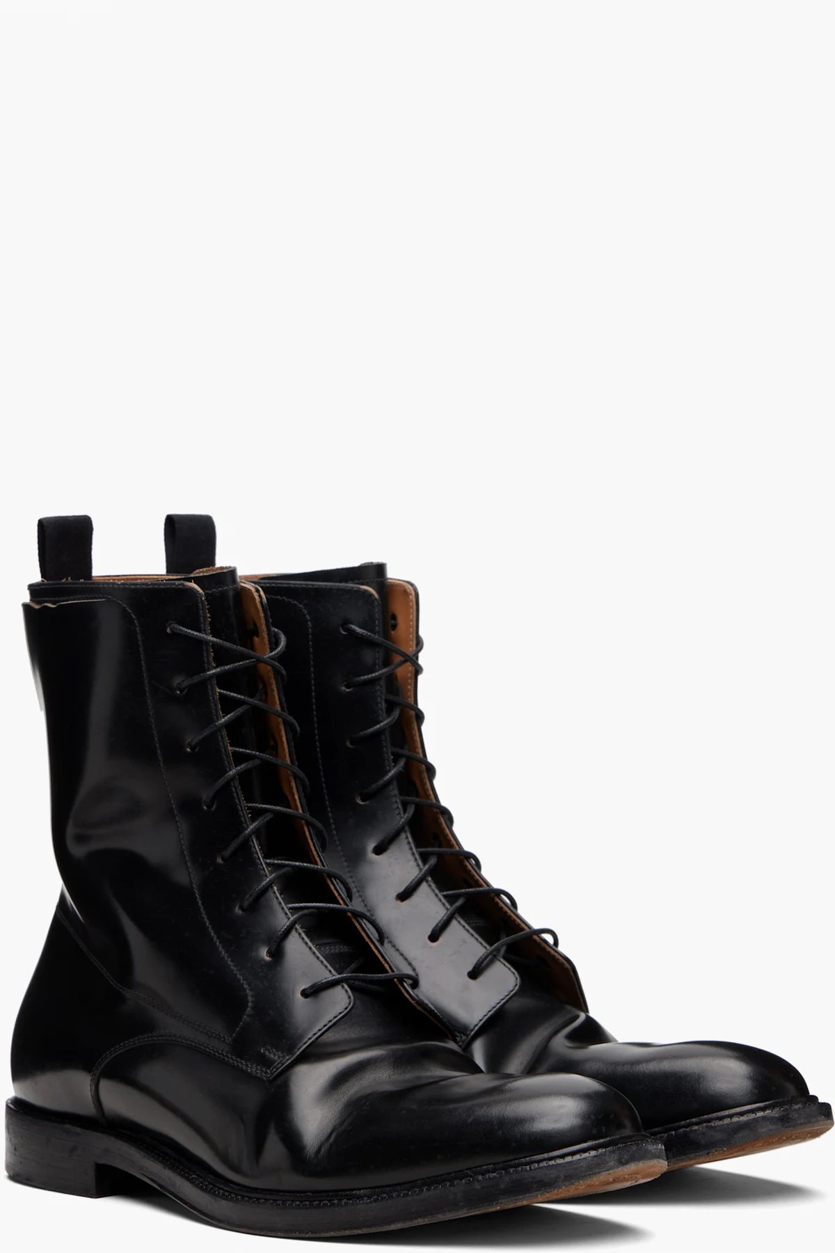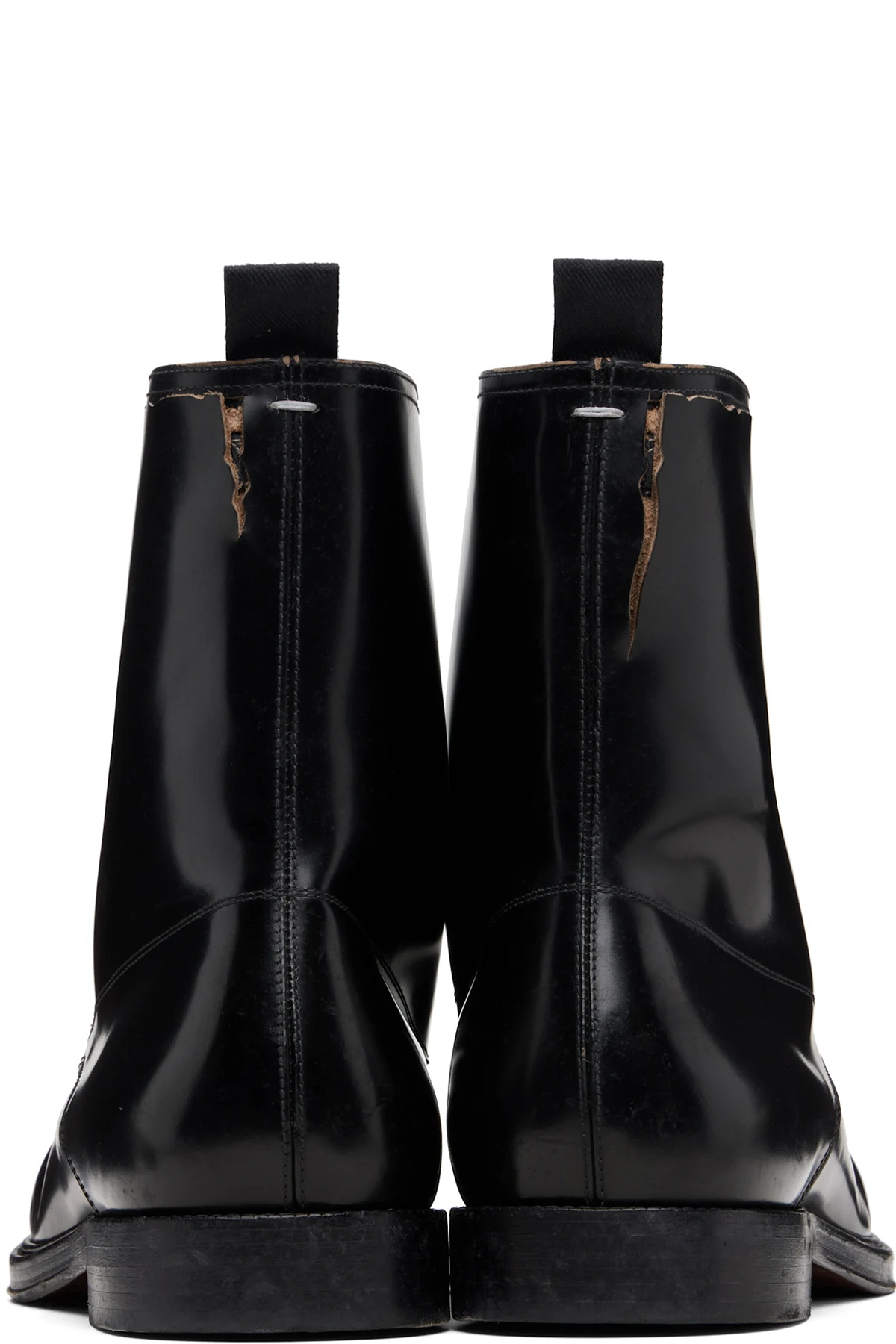 Ankle-high polished calfskin boots.
