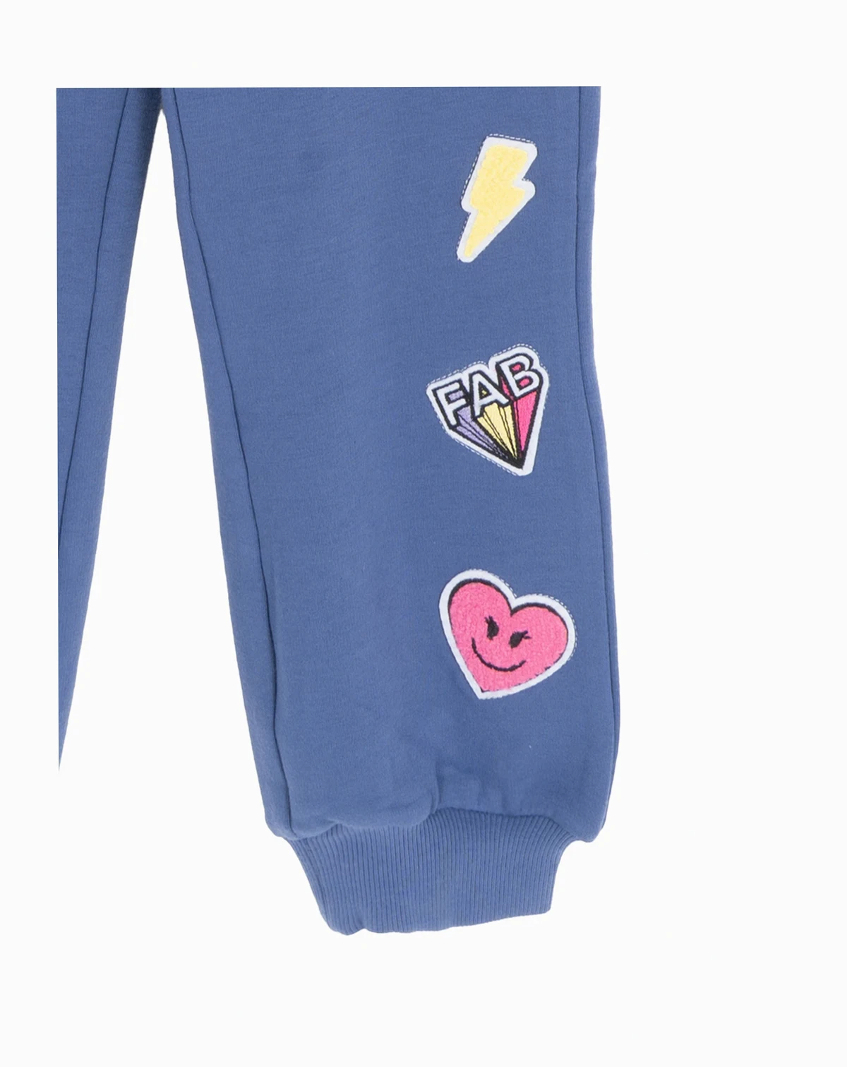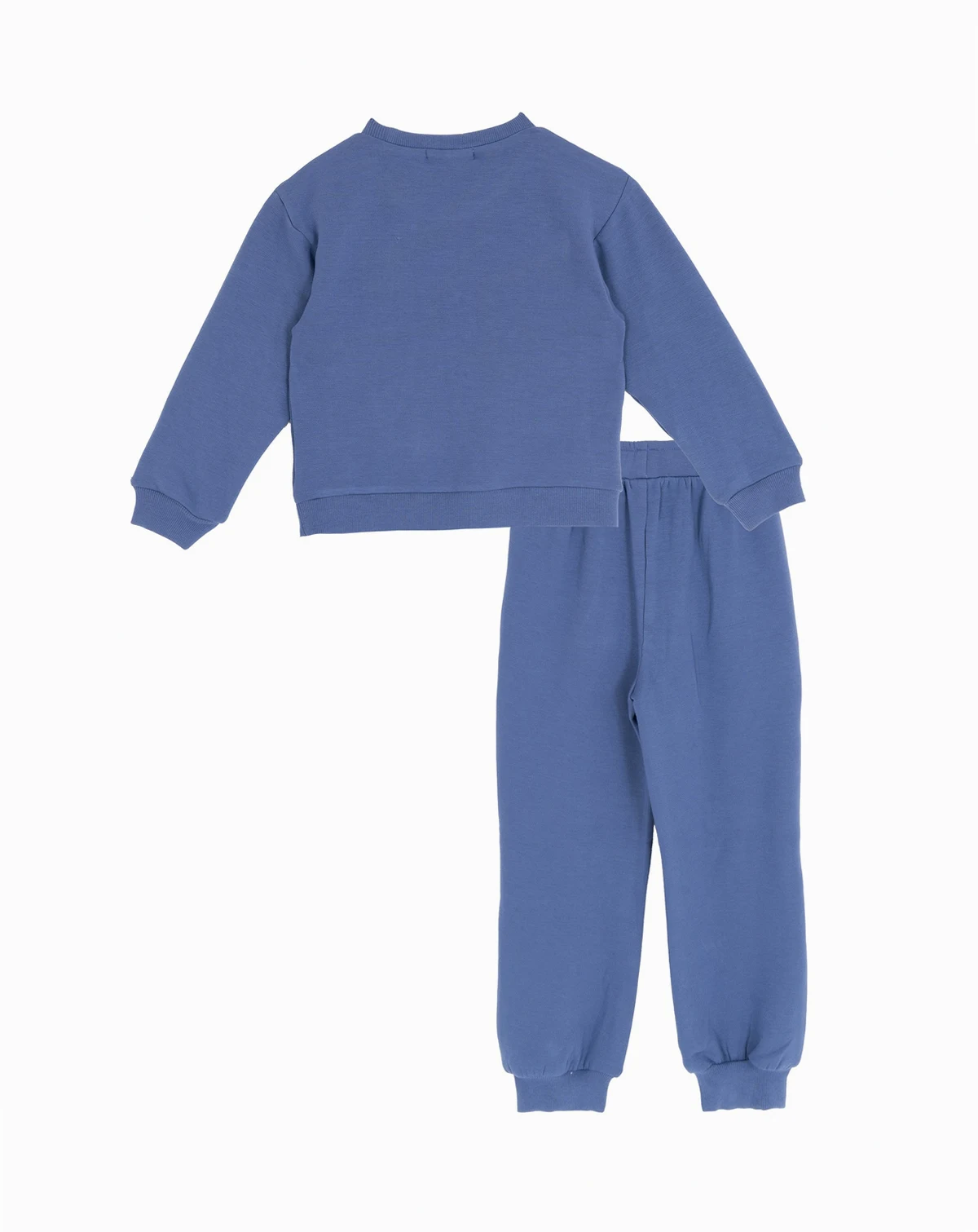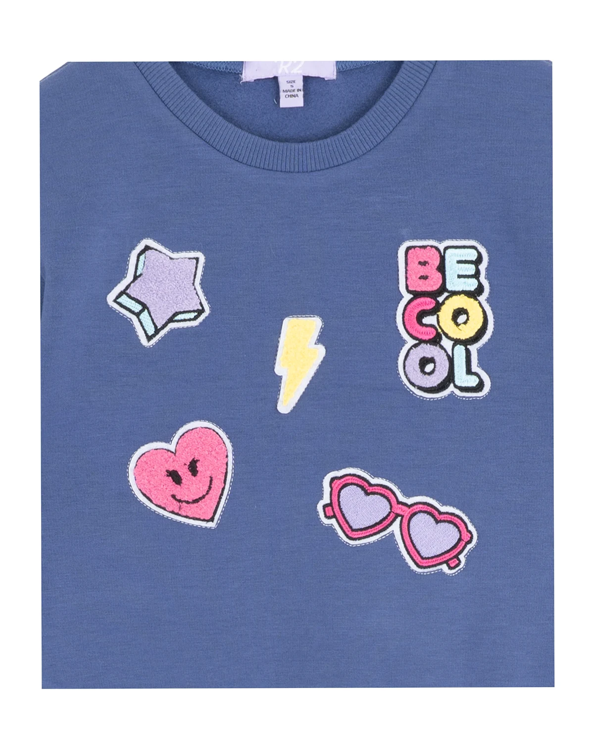 Styled with vibrant chenille patches, this Rare Editions set offers an effortlessly cool and expressive vibe. The dusty blue sweatshirt and coordinating joggers with playful patchwork create a laid-back look full of personality.