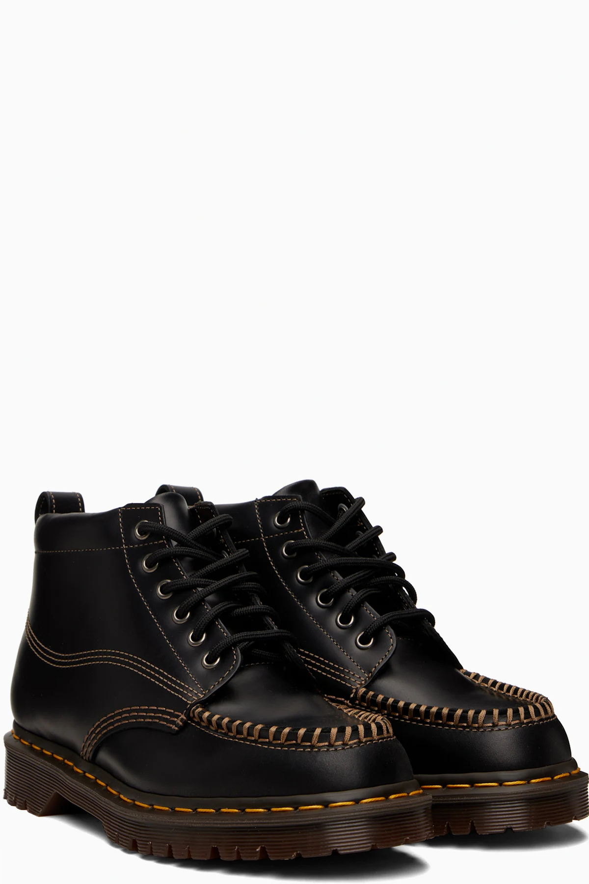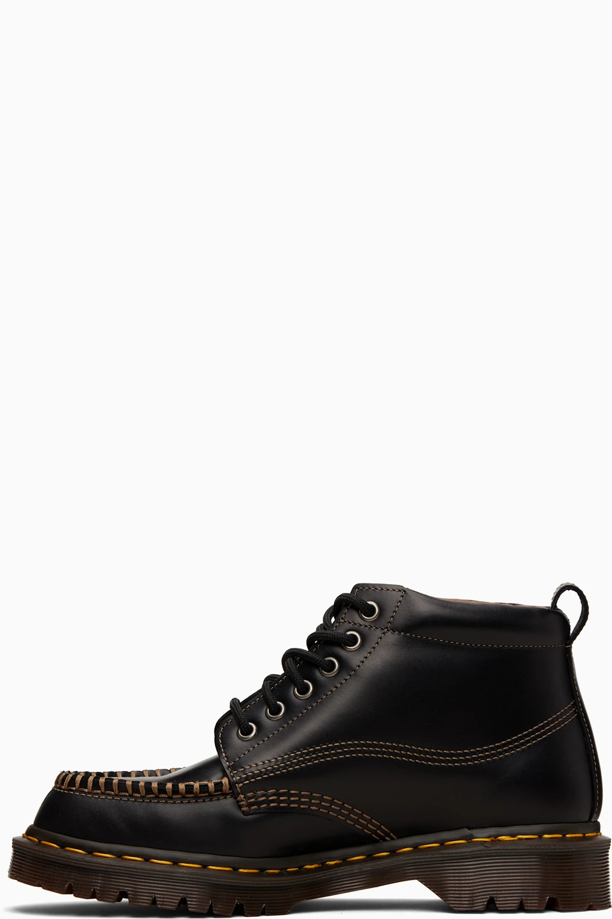 · Yellow topstitching at heat-sealed Goodyear welt