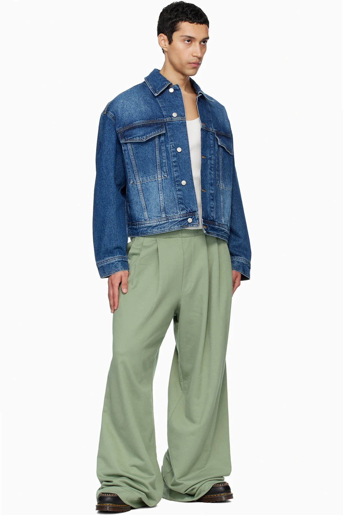 Ankle-high buffed leather boots.