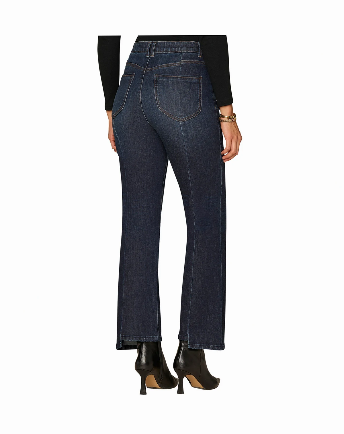 Enjoy a skyrise rise and barely boot leg with a clean finish on these technologically advanced Democracy jeans. The AbSolution construction features an elastic waistband and mesh panels for all-day comfort.