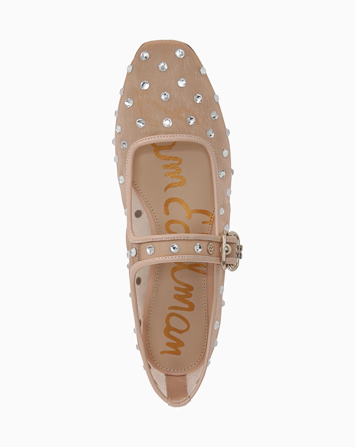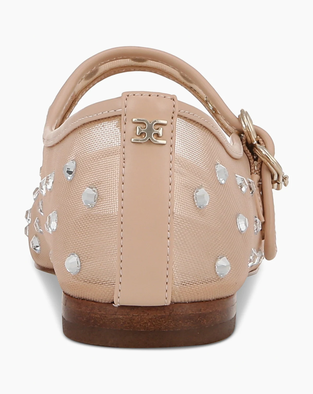 Michaela Shine is a delicate mesh Mary-Jane with rhinestone details. The pair to breathe new life into all your floral and flowing skirts.