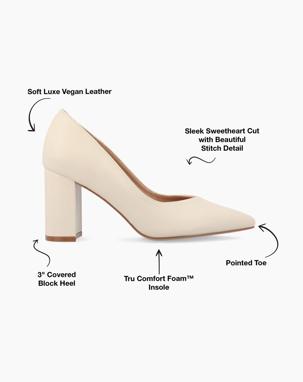 Introducing Simonne by Journee Collection, the chic and versatile pump you won't believe you ever lived without. With a range of nude color options, Simonne's pointed-toe design and 3" block heel offer a timeless style. Crafted with a slip-on design and a soft insole, Simonne provides both comfort and style, making it a classic basic that you'll love to wear for any occasion.