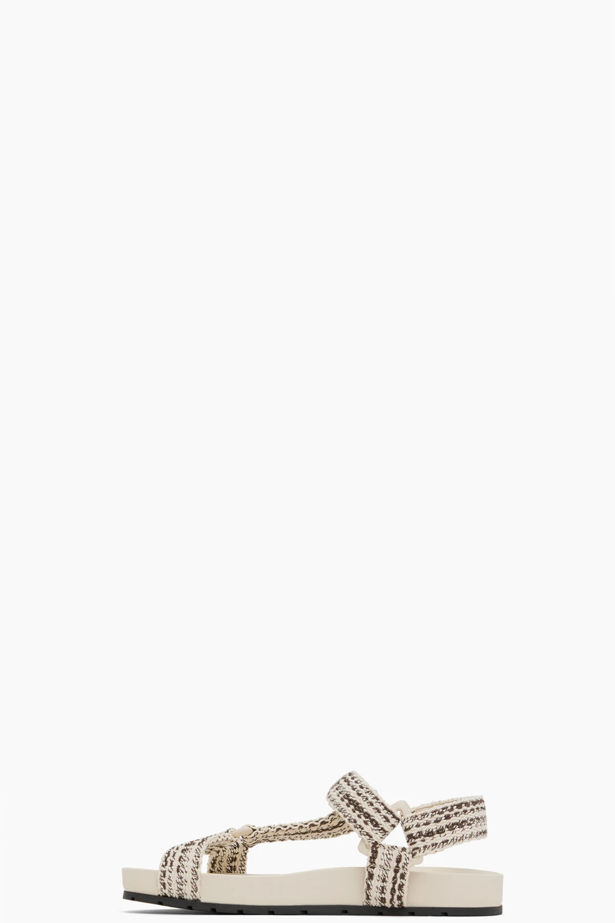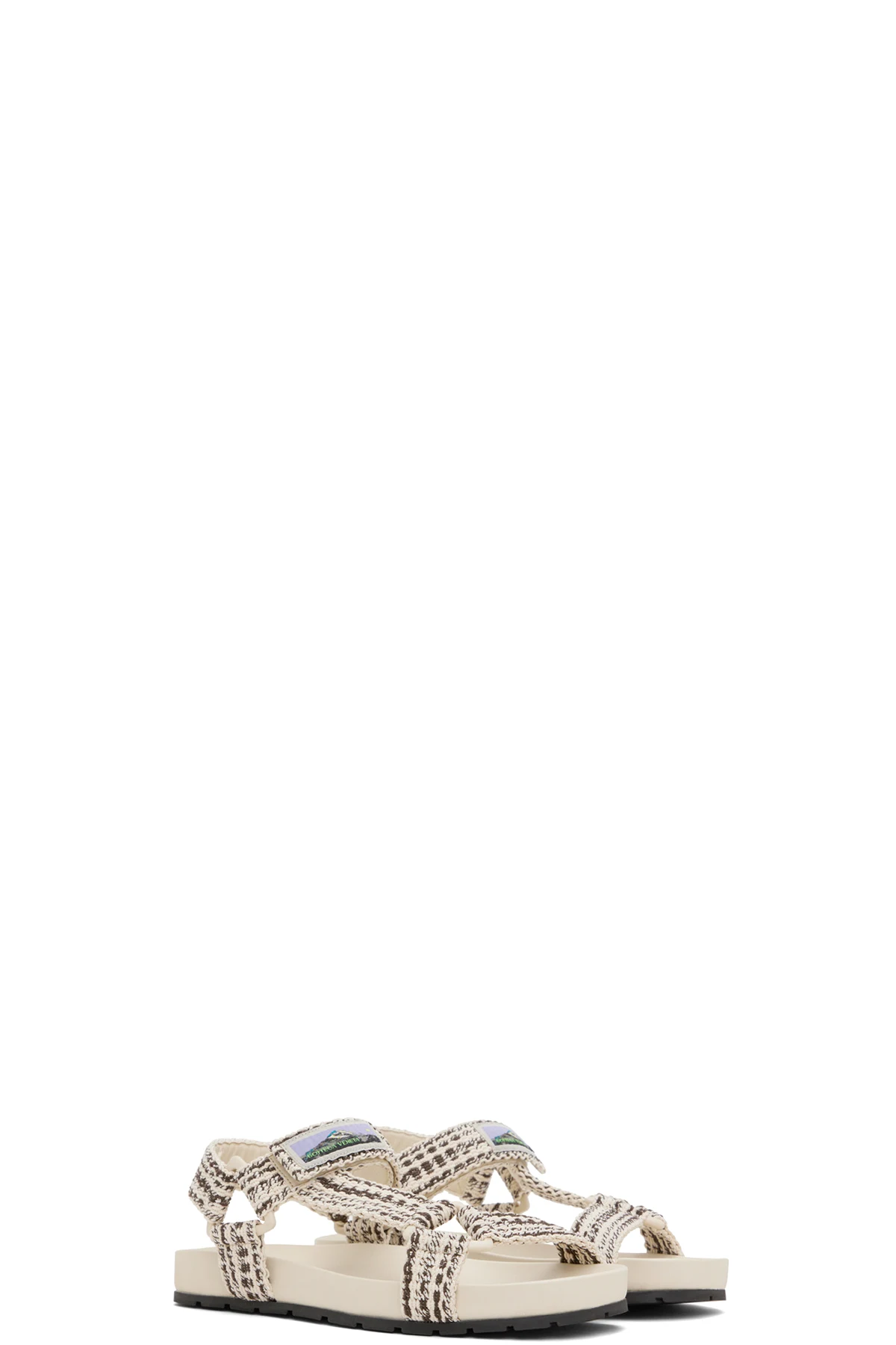 Webbing sandals in off-white and brown.