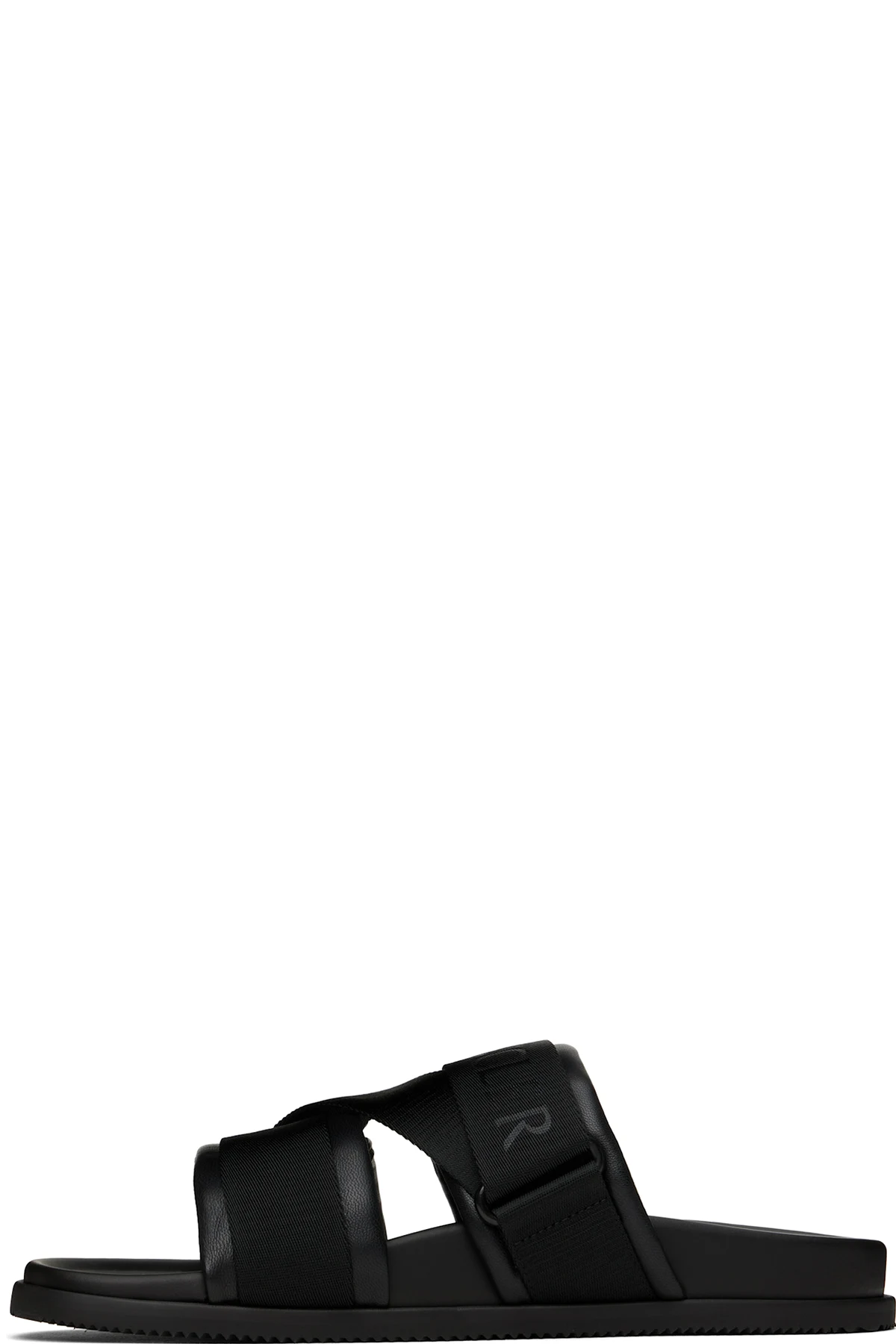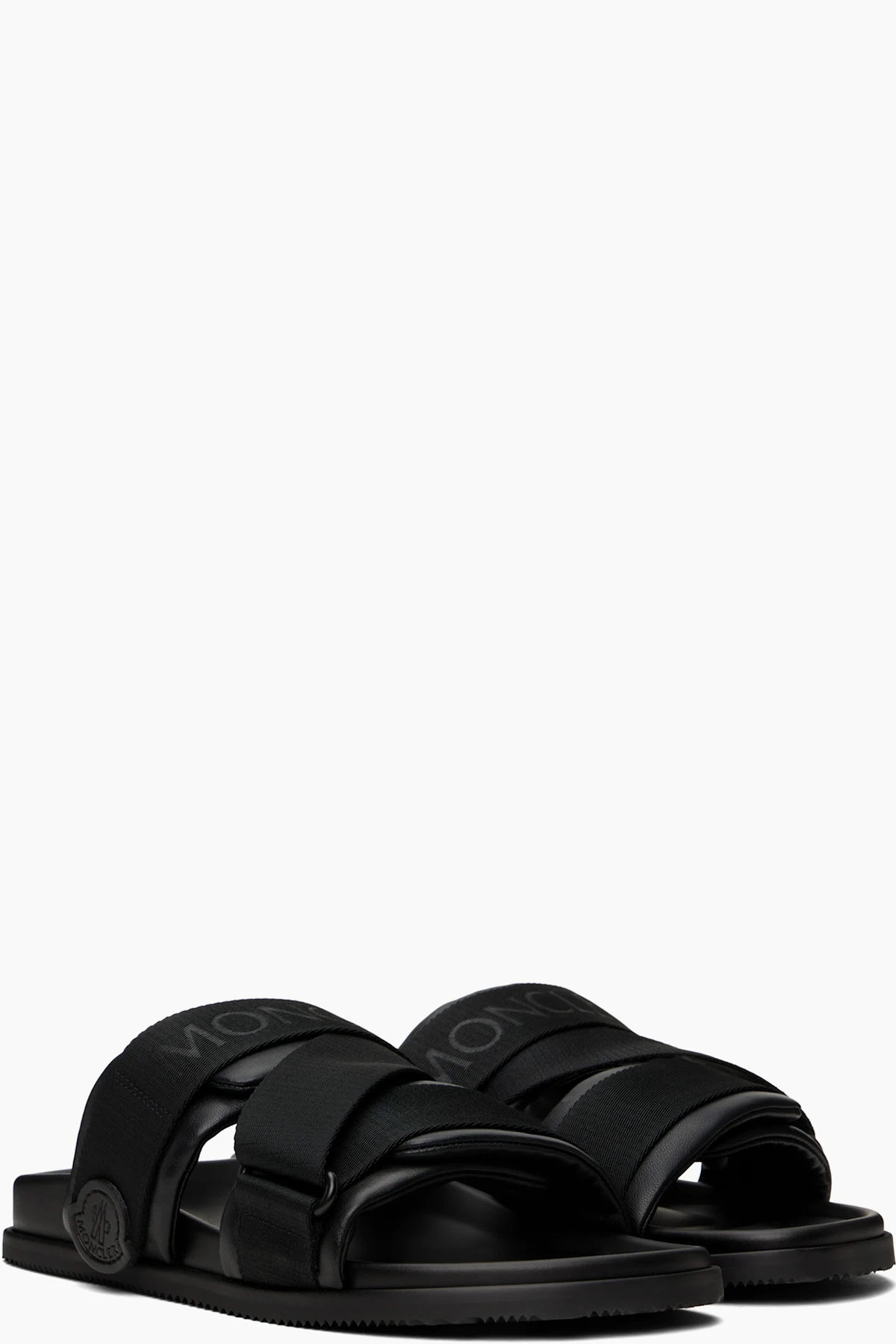 Grained leather slip-on sandals in black.