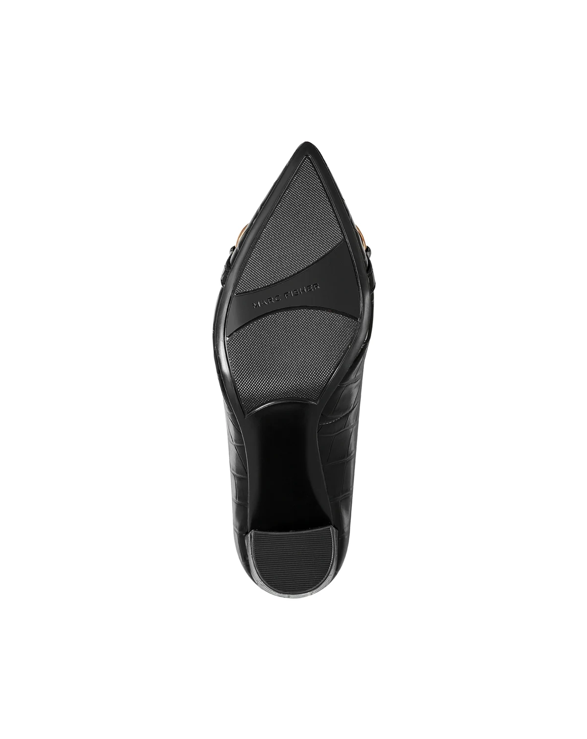 Stay fashionable in the Marc Fisher Gruff high block heel pumps, featuring a gold-tone bit accent across the upper and a slip-on silhouette. This classic and timeless pump is a must have. Designed for the modern woman, Marc Fisher Footwear provides statement shoes for every occasion.