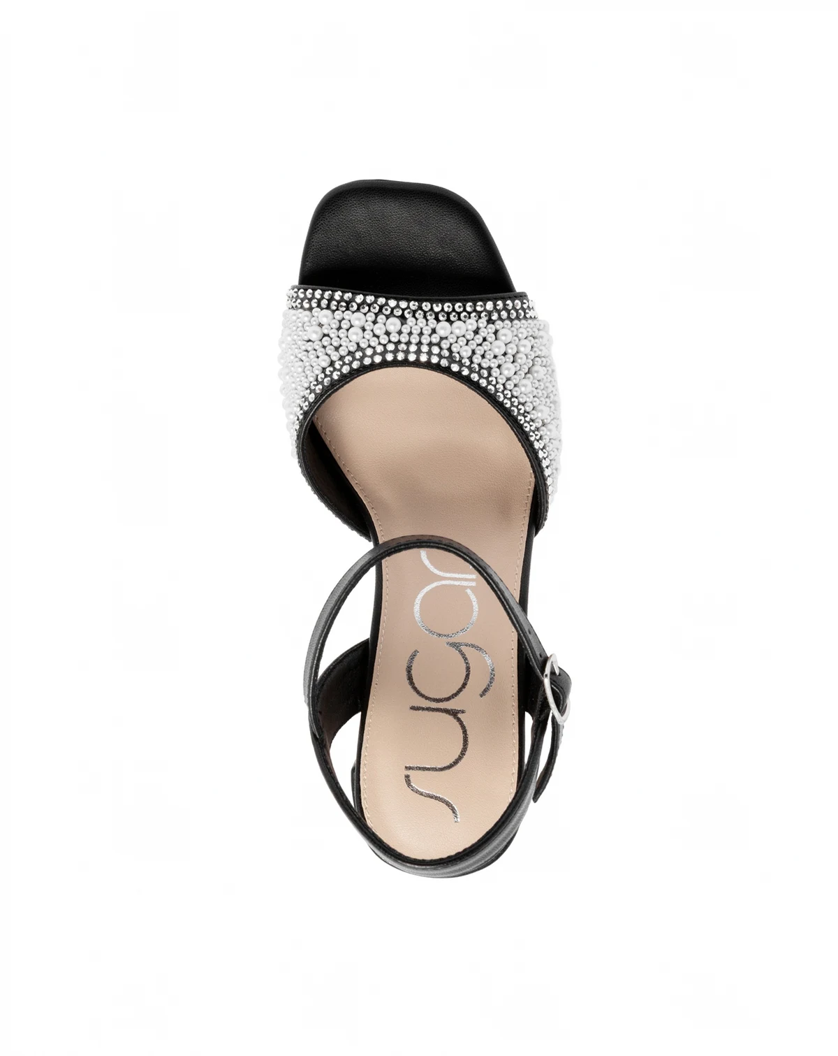 This fashionable and comfortable dress heel by Sugar is detailed with stones and beads that will compliment any outfit.