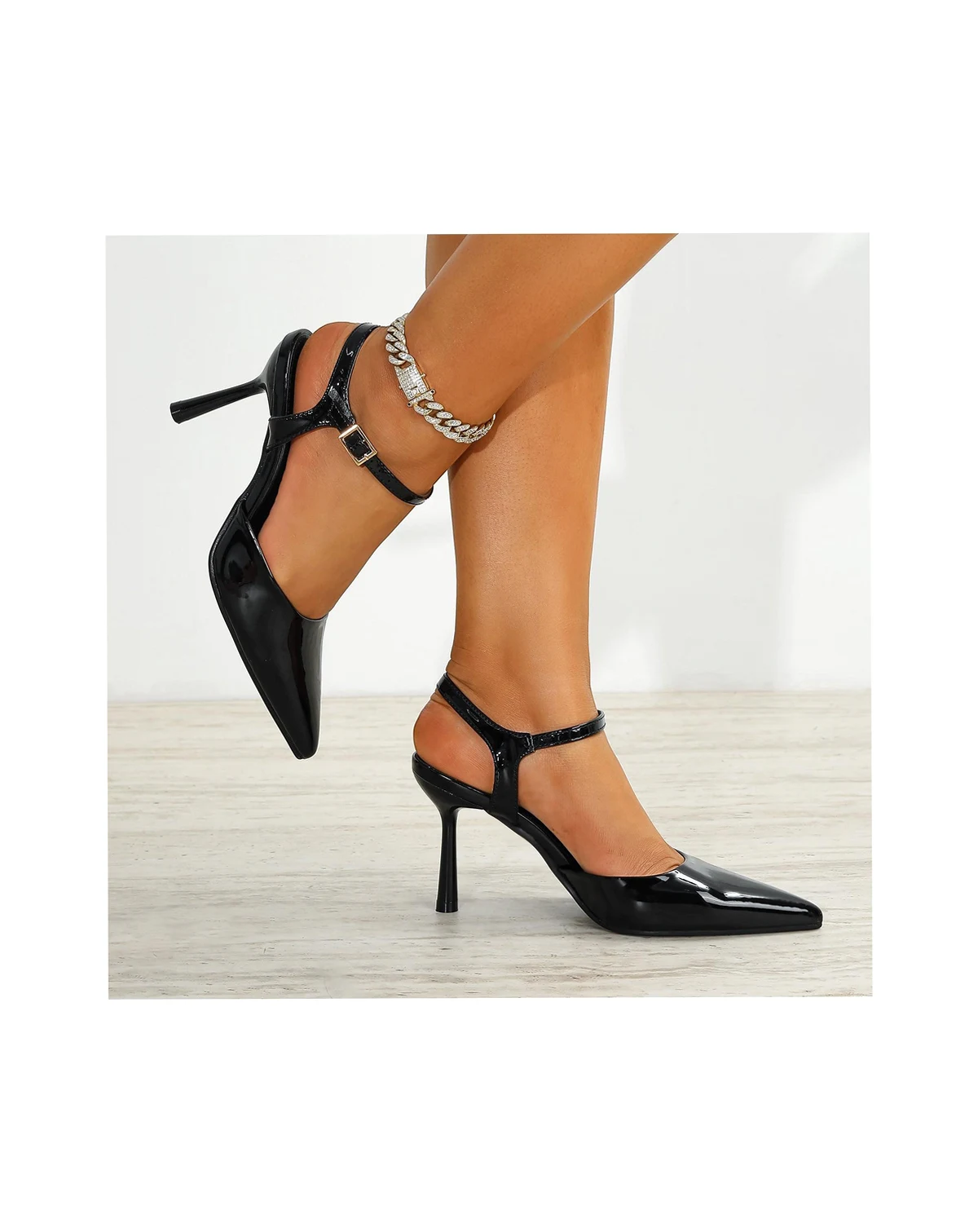 Cesia pumps have a classic and sophisticated silhouette featuring a pointed toe and an adjustable ankle strap on a slender heel.