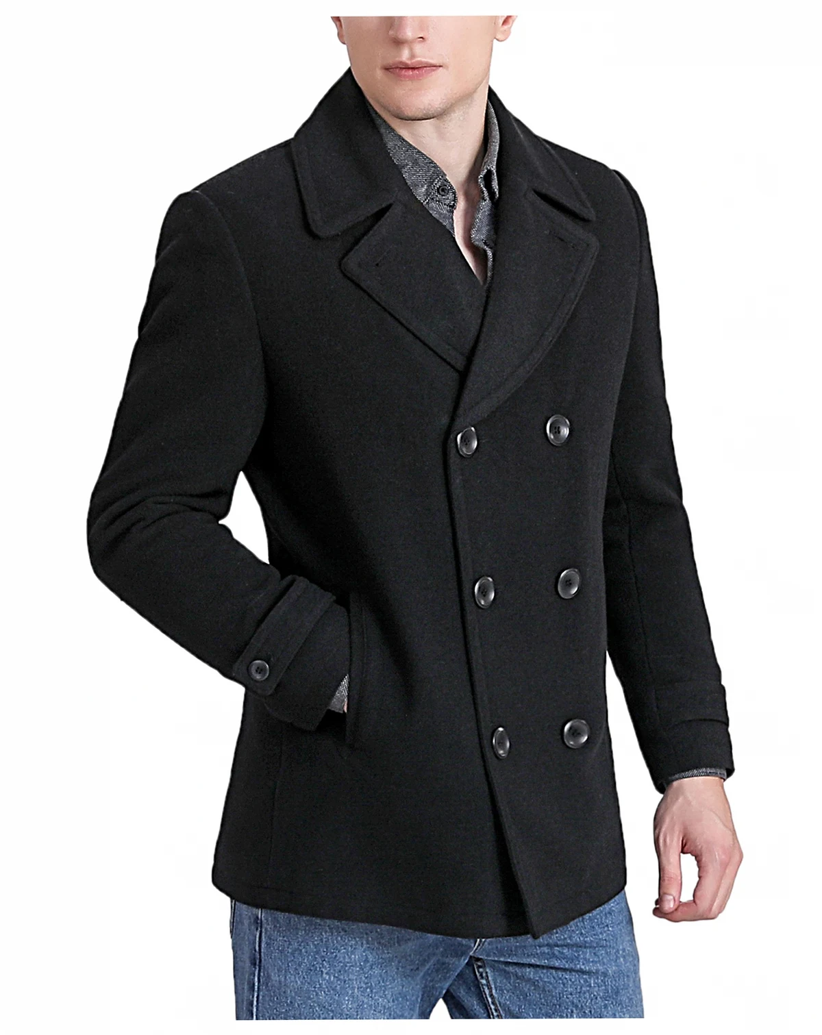 A timeless classic since the early 18th century, this double-breasted wool blend pea coat was designed with inspiration from Navy-issued pea coats.