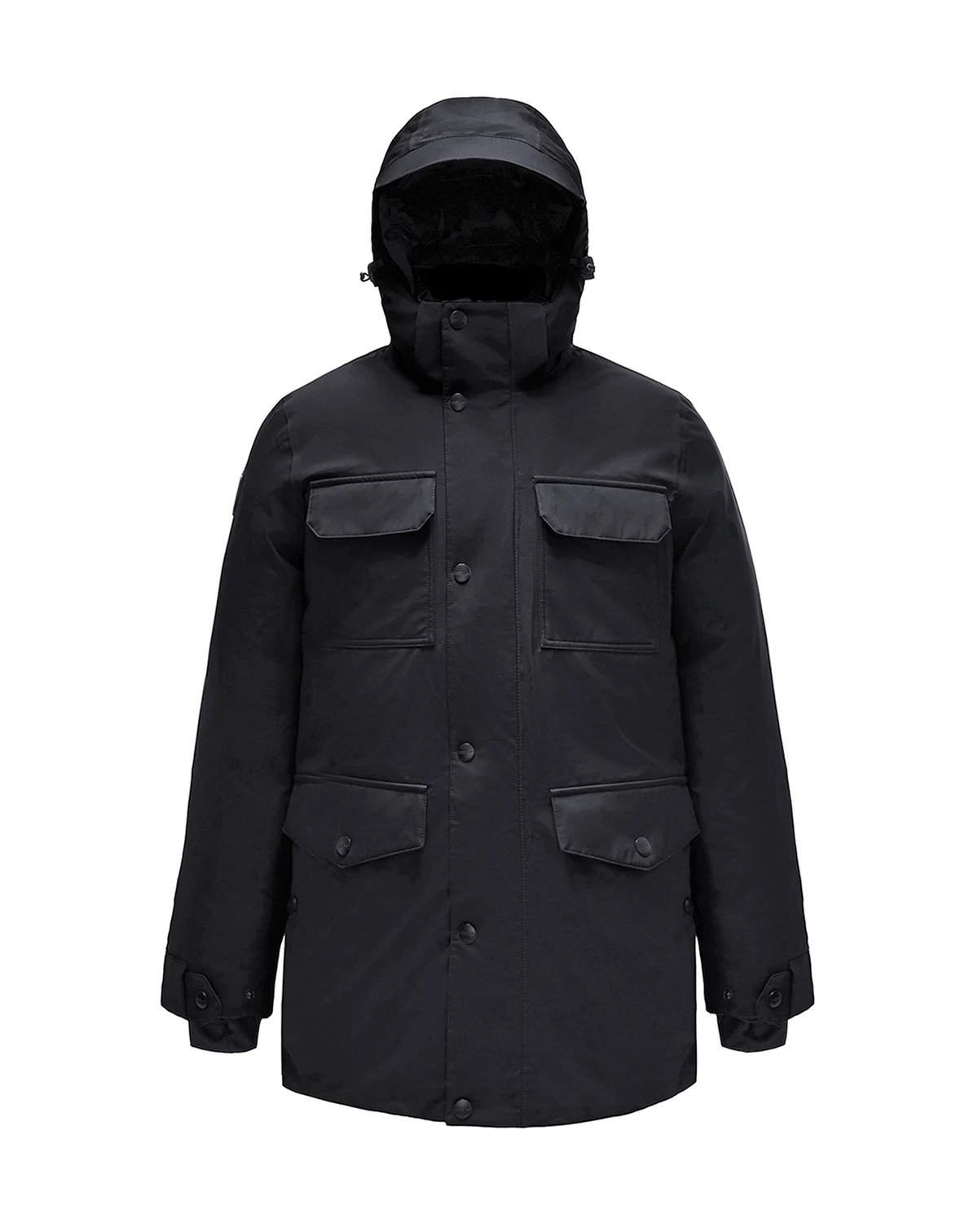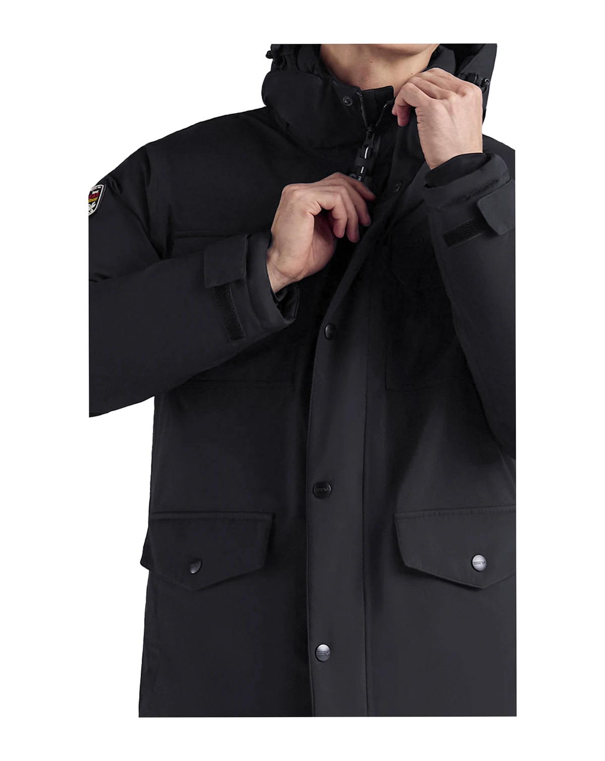 Introducing the Hodgson waterproof down parka, a versatile addition to your cold-weather arsenal from our Reforged Supply Collection. Crafted with recycled materials and recycled 750 fill power down, this men's parka offers exceptional warmth and durability. Its insulated detachable hood, fleece-lined collar, and adjustable cuffs provide customizable comfort and protection against the elements; not to mention that it is completely waterproof and windproof as you'd expect. Featuring six external pockets, including fleece-lined side and vertical entry, it ensures convenient weatherproof storage for your belongings. Take on winter in style and sustainability.