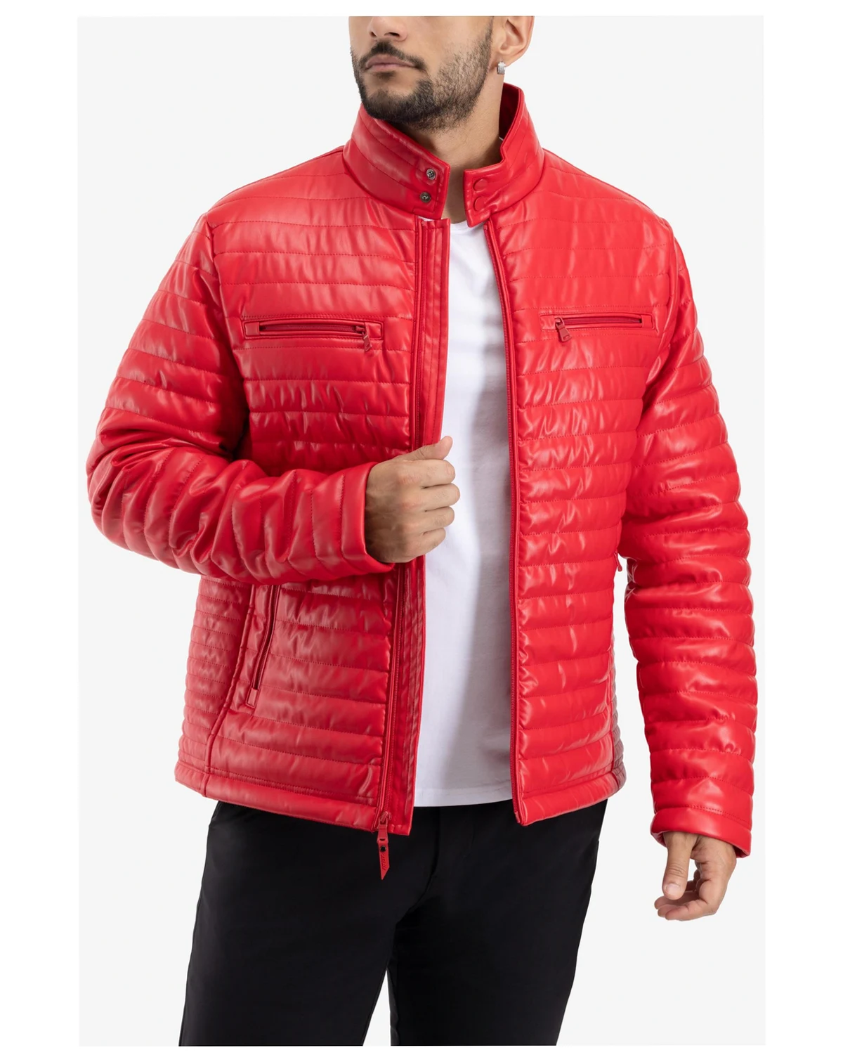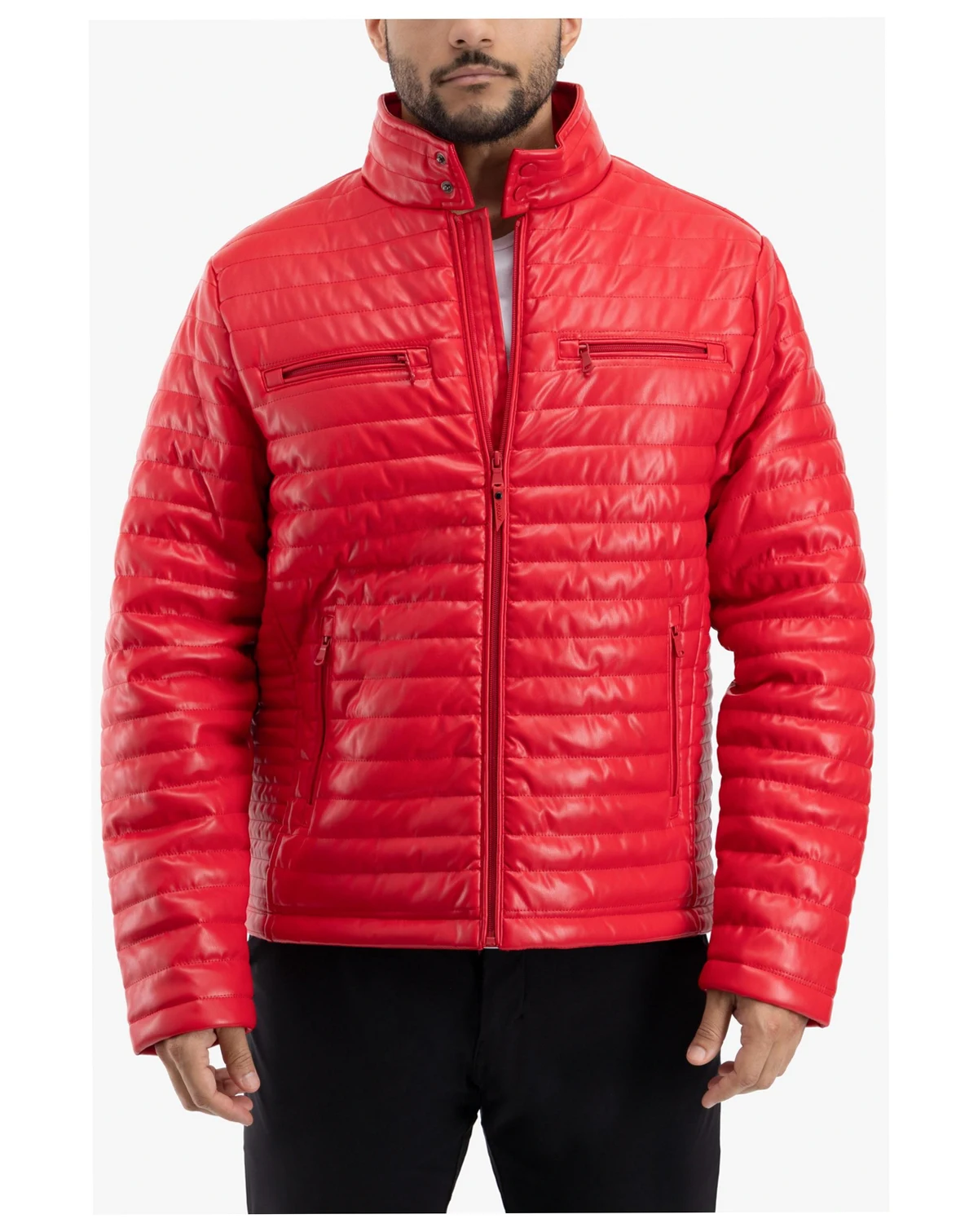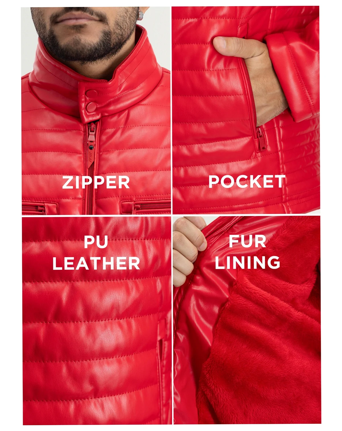 Stay warm and stylish in our X RAY Men's PU Quilted Jacket. The faux shearling lining provides ultimate comfort, while the chest and side pockets add functionality. This jacket offers a perfect fit and timeless style for any occasion.