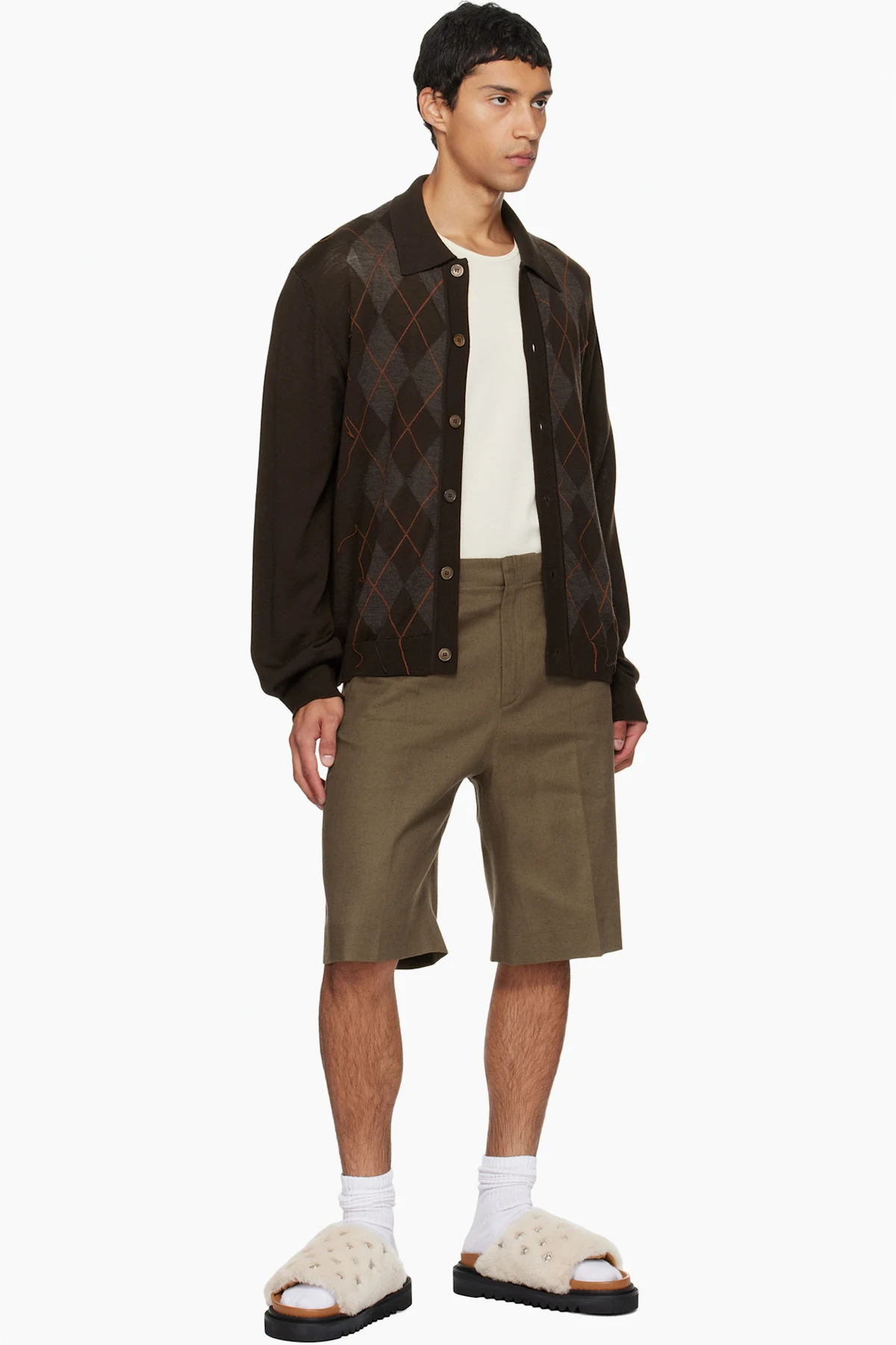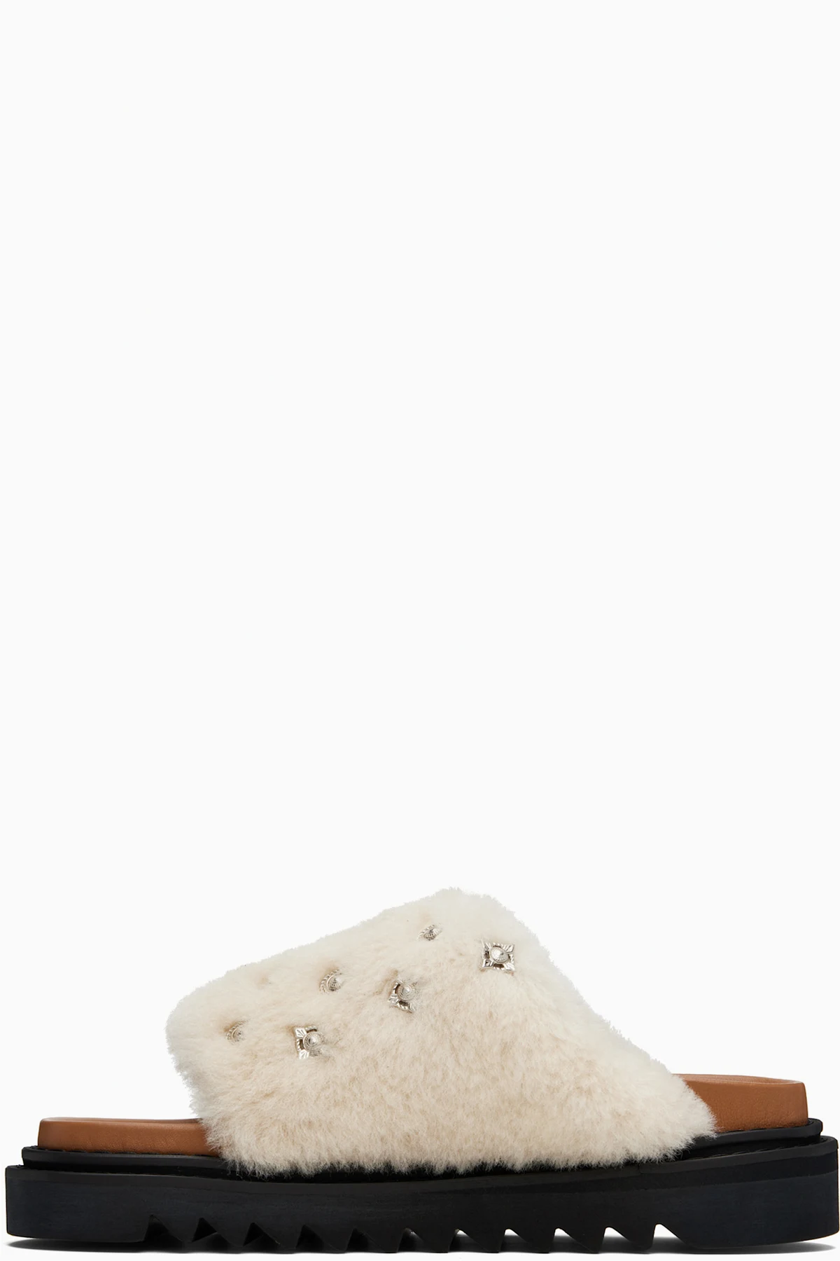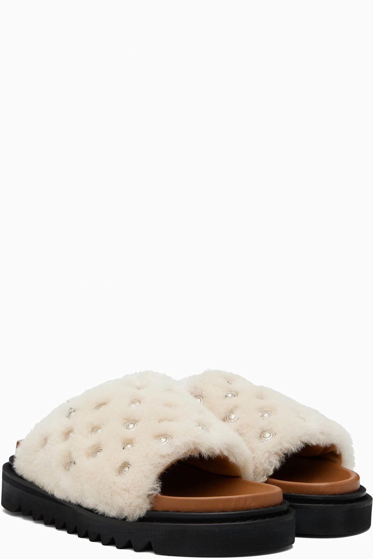 Shearling slip-on sandals.