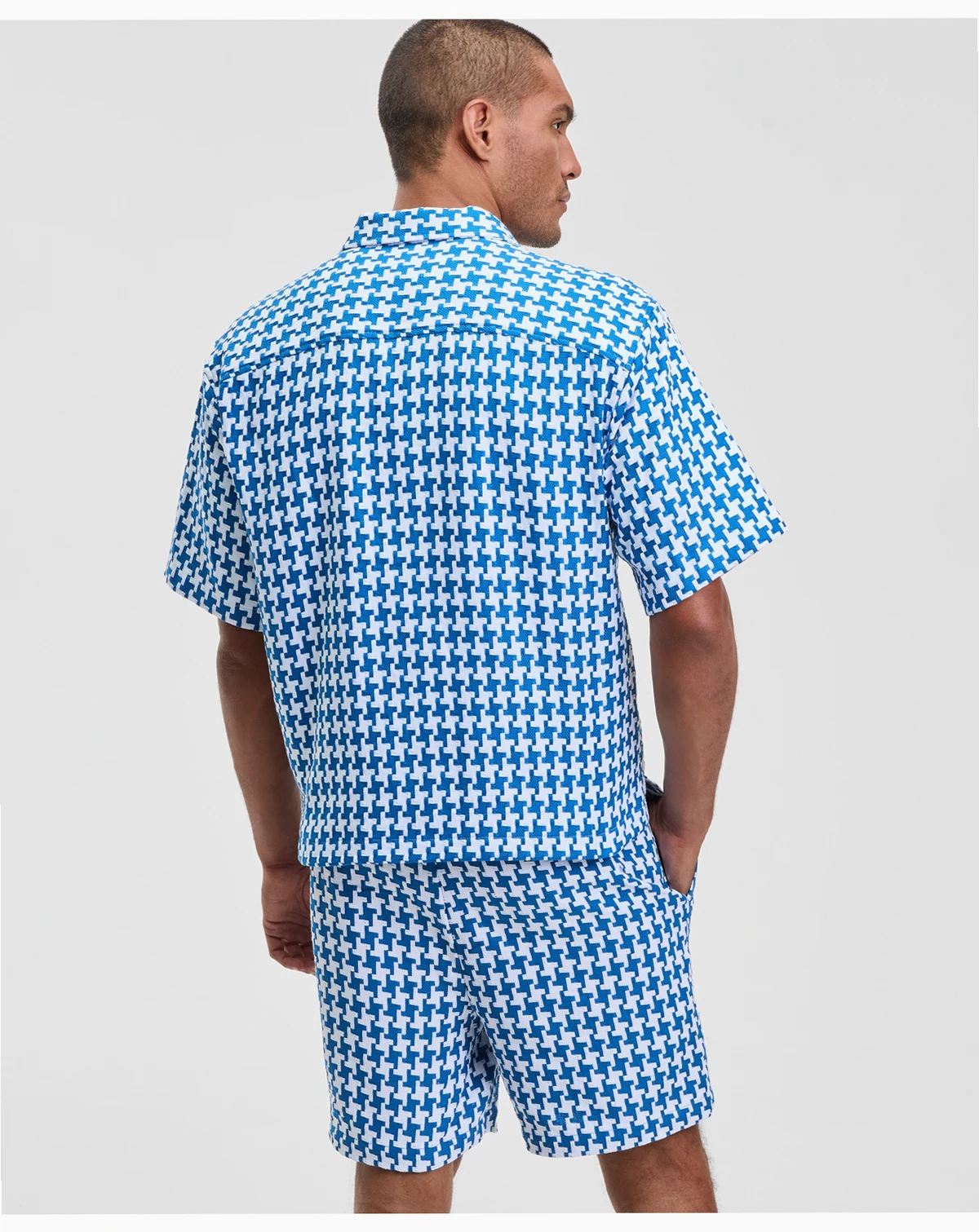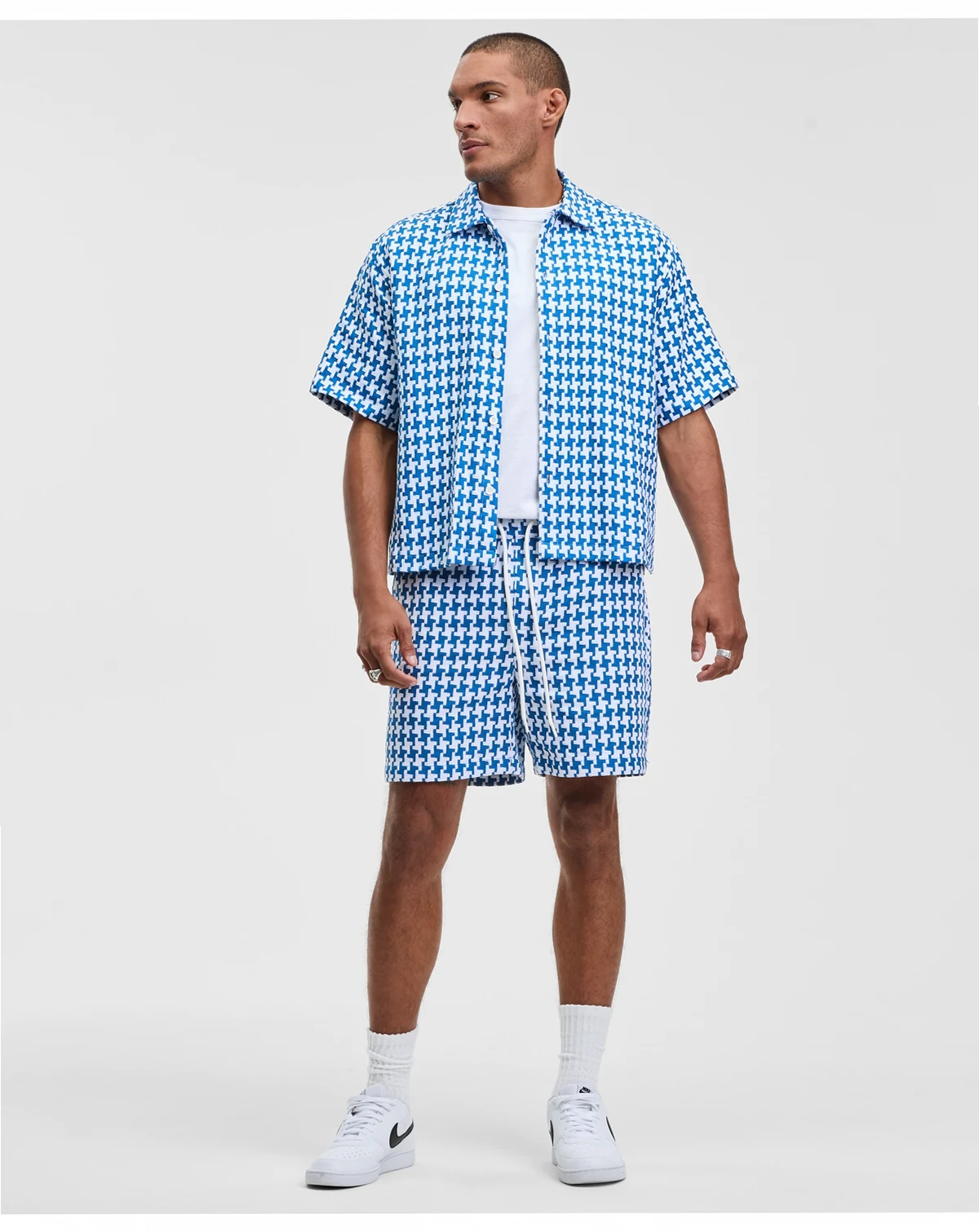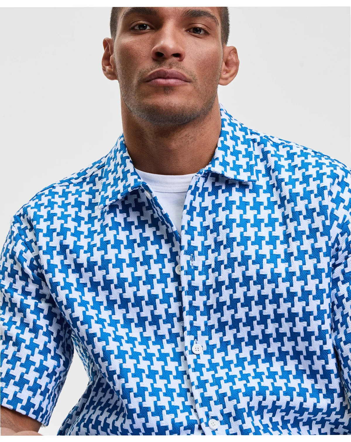 A bright, fresh take on the short-sleeve, button-front shirt, this version features a yarn-dyed, textured geometric pattern from front to back. ABOUT THE BRAND: Mode of One is designed for the individual who sees style as a powerful tool for self-expression.