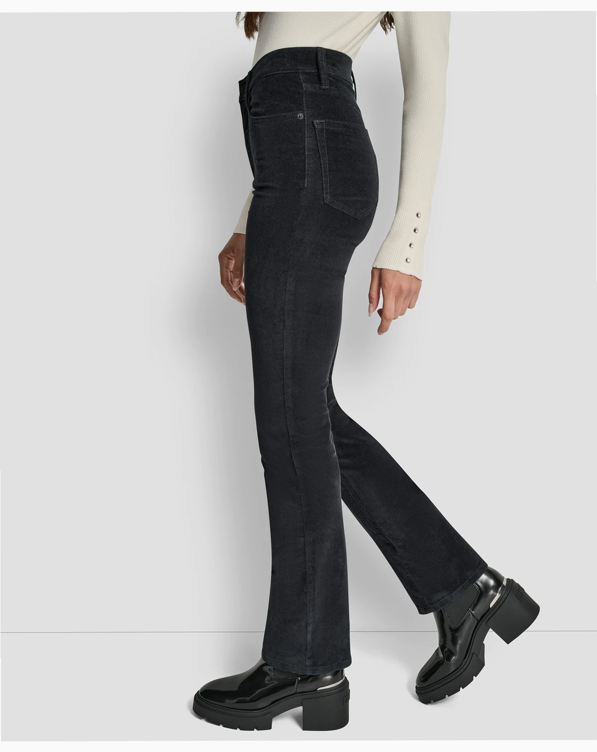 Step out in timeless style with these high-rise bootcut jeans from DKNY Jeans. Featuring a flattering fit and classic 5-pocket design, they blend comfort with effortless sophistication.
