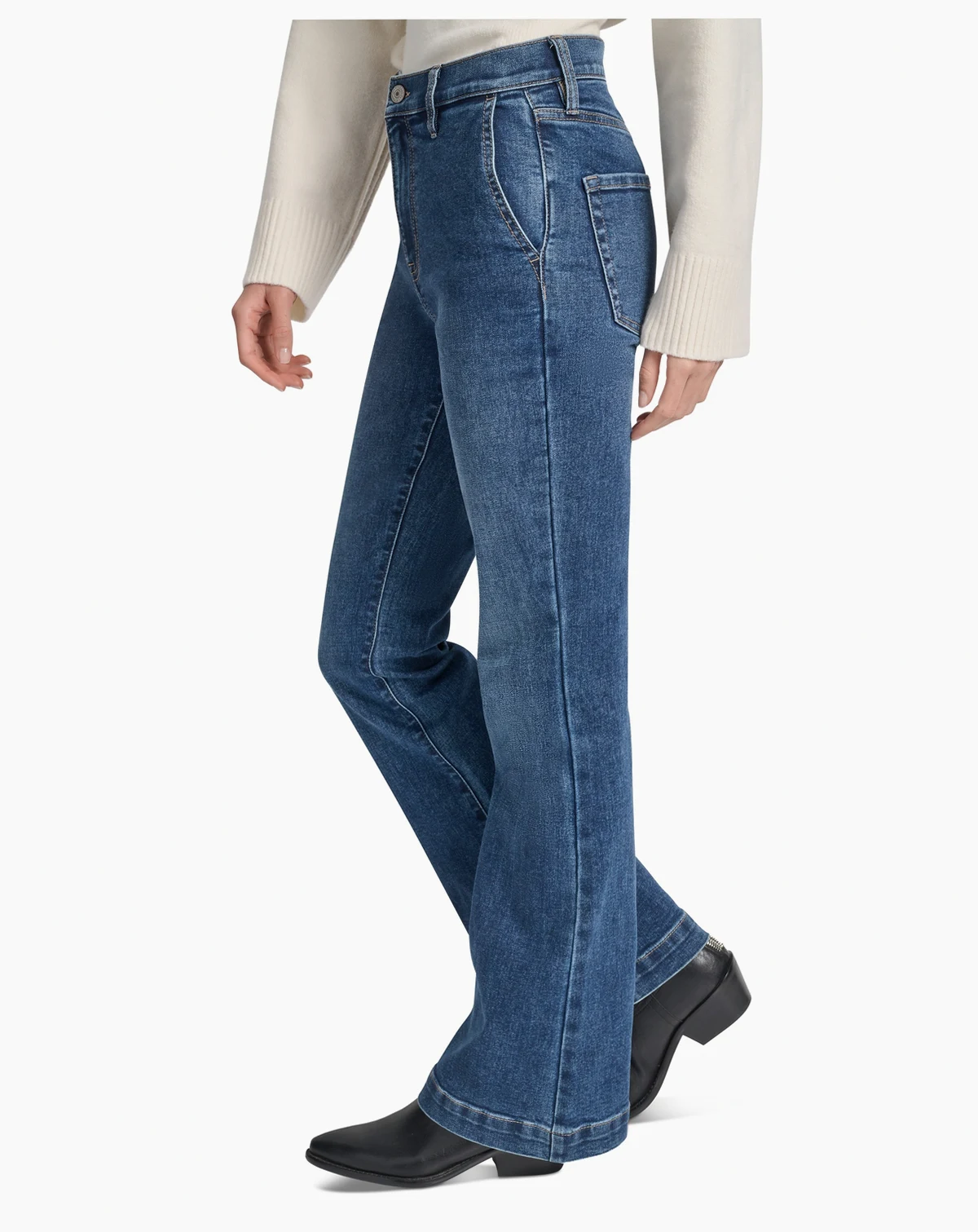 A subtle flare leg and a high-waisted silhouette make these DKNY Jeans trouser jeans your new go-to pair.