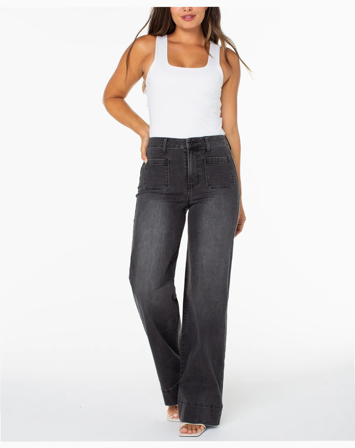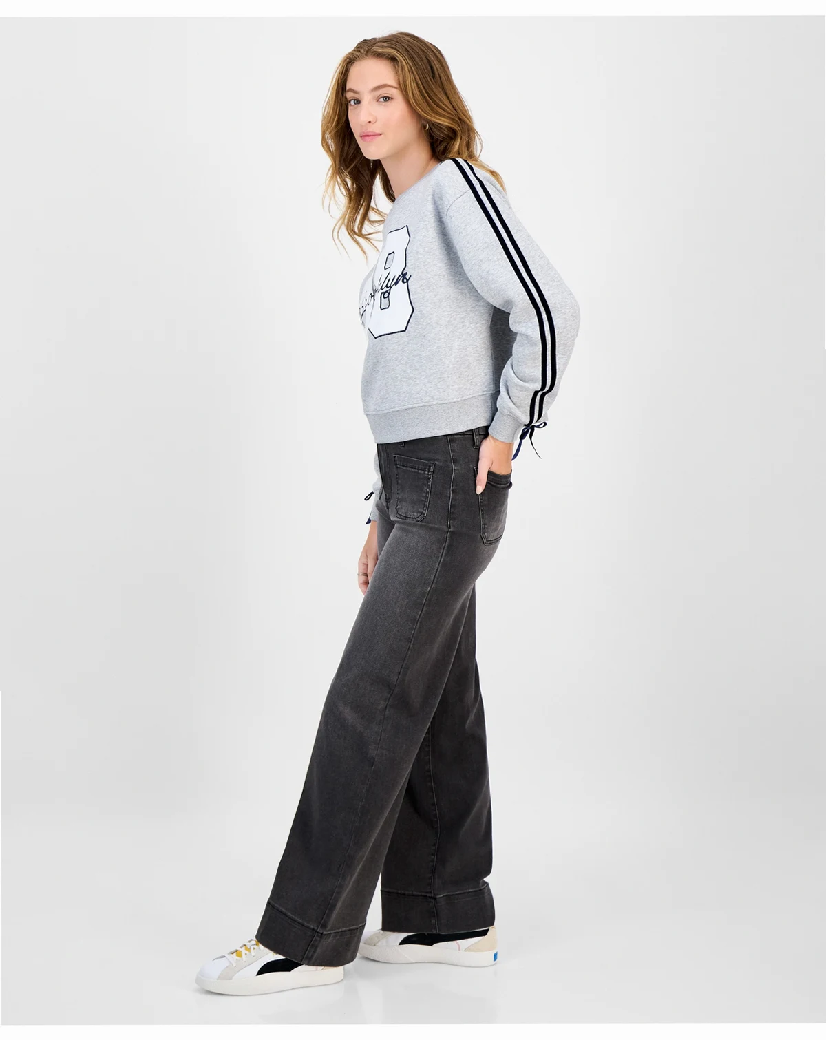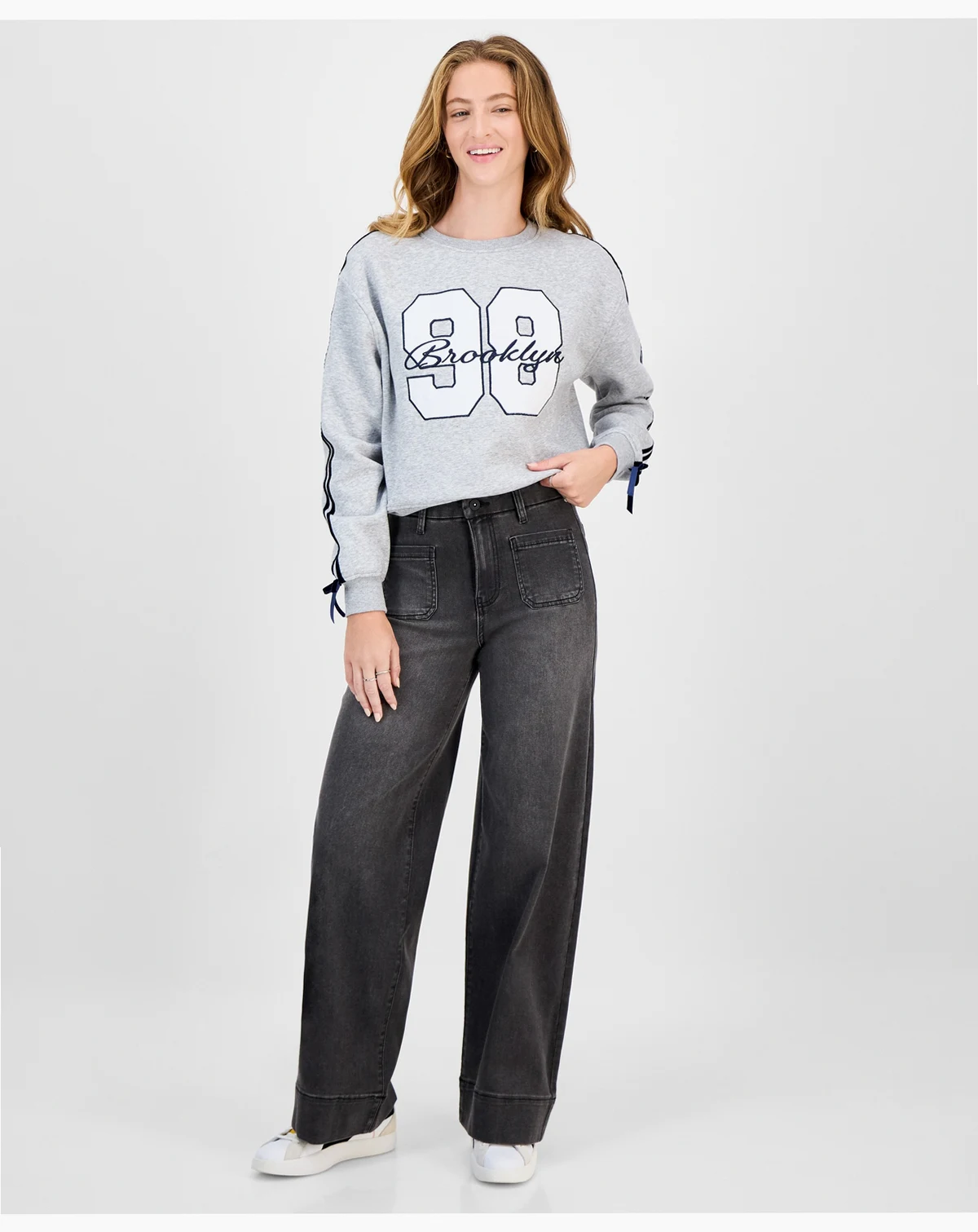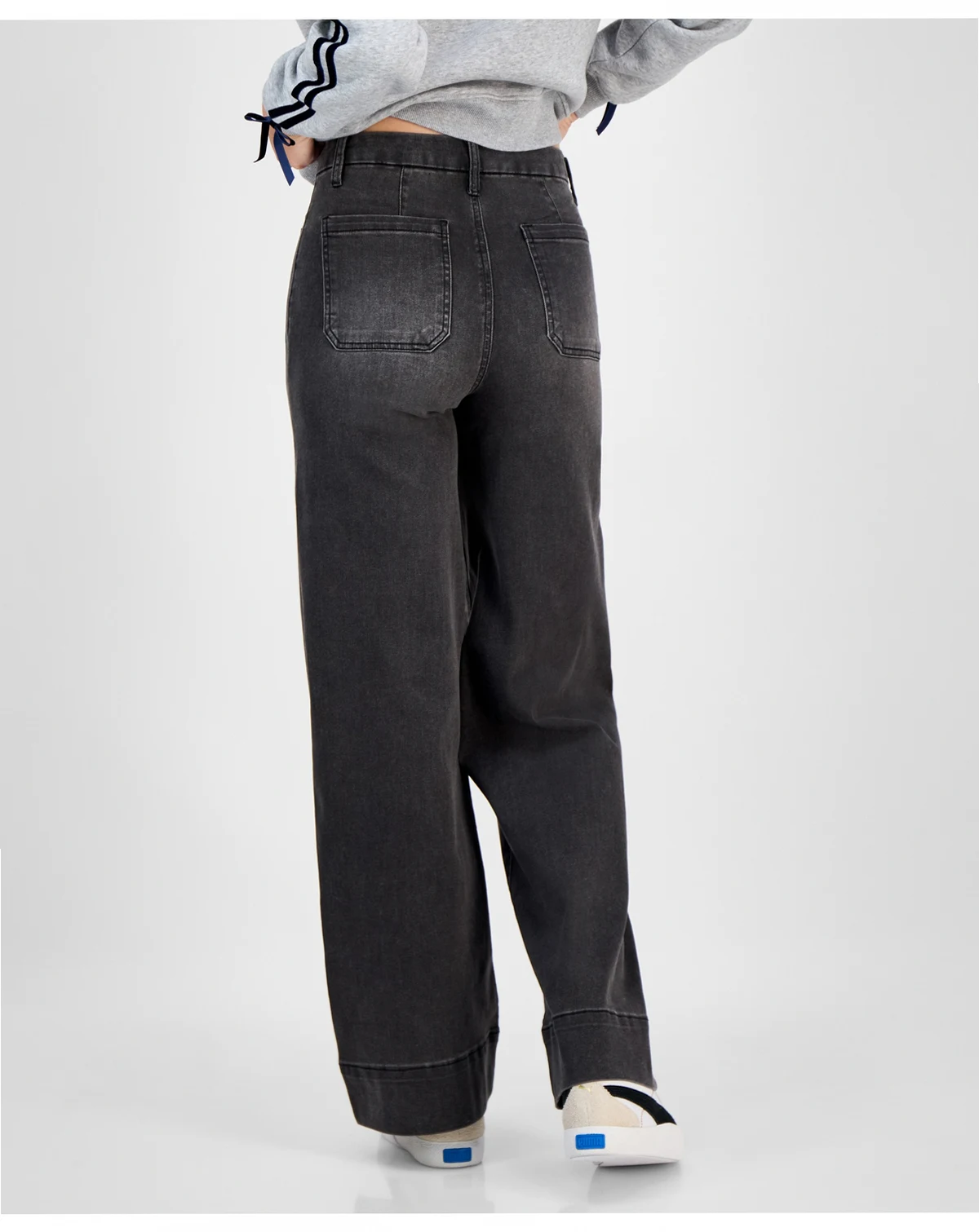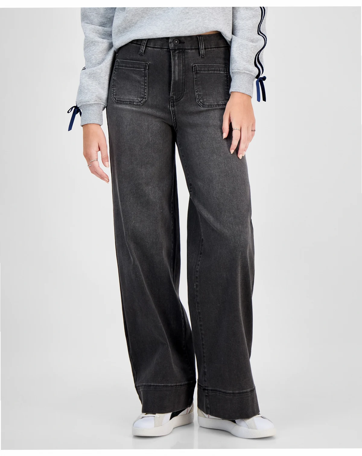 Juniors' High-Rise Patch-Pocket Wide-Leg Jeans