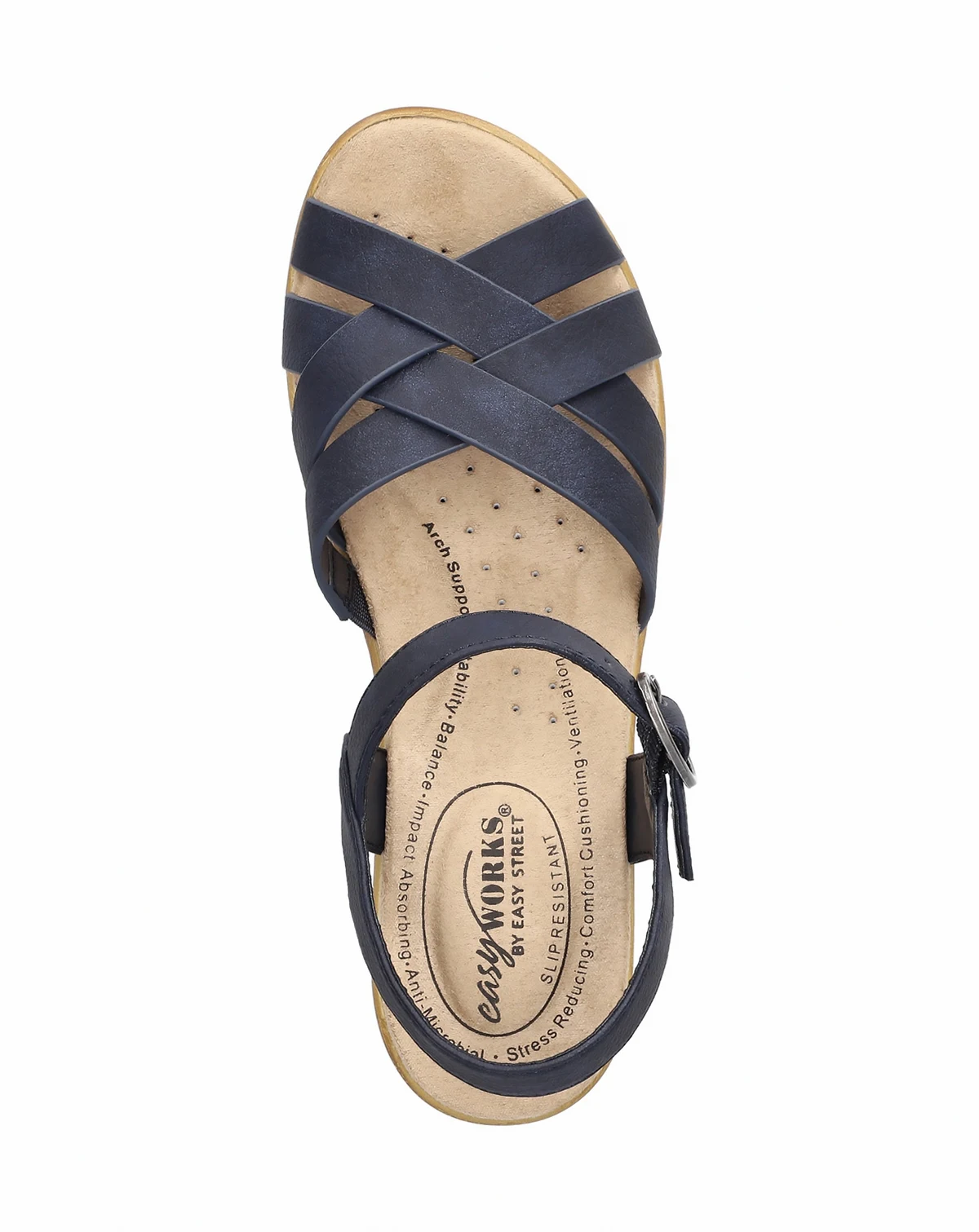 Step out in modern style with the Miyah from Easy Works Street Series. This block heel sandal features a multi-strap woven upper that's on trend. The adjustable buckle ensures a custom fit for added convenience.