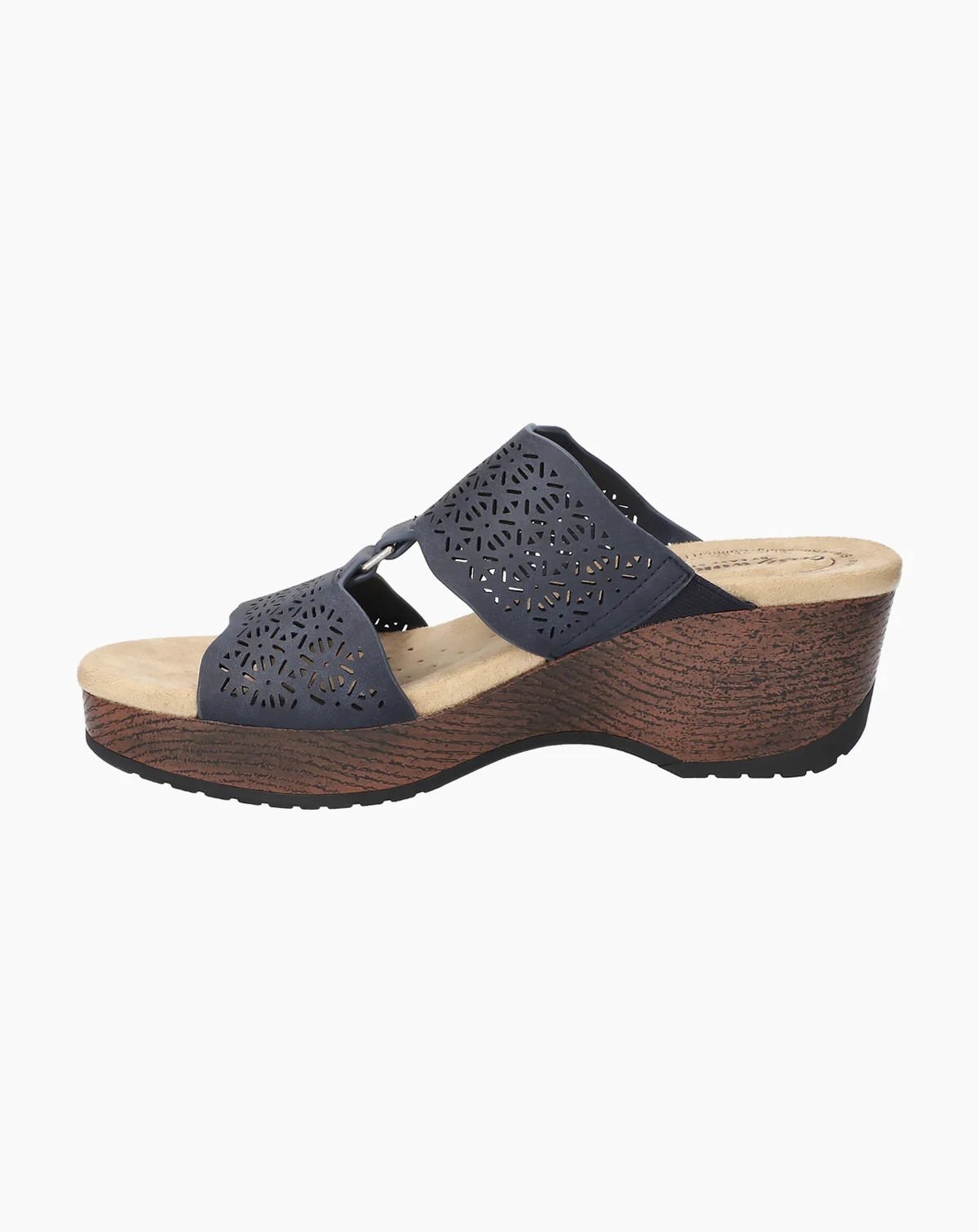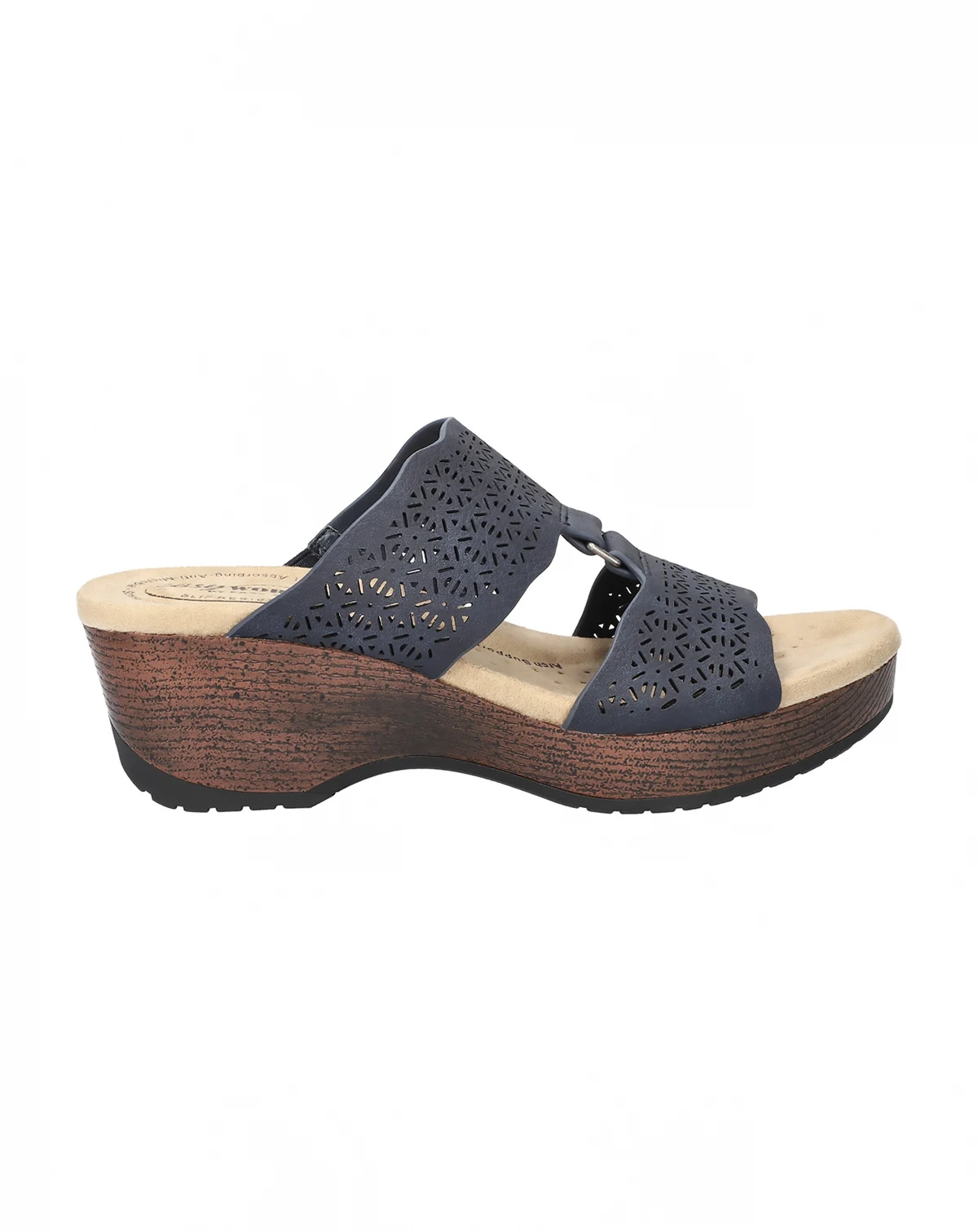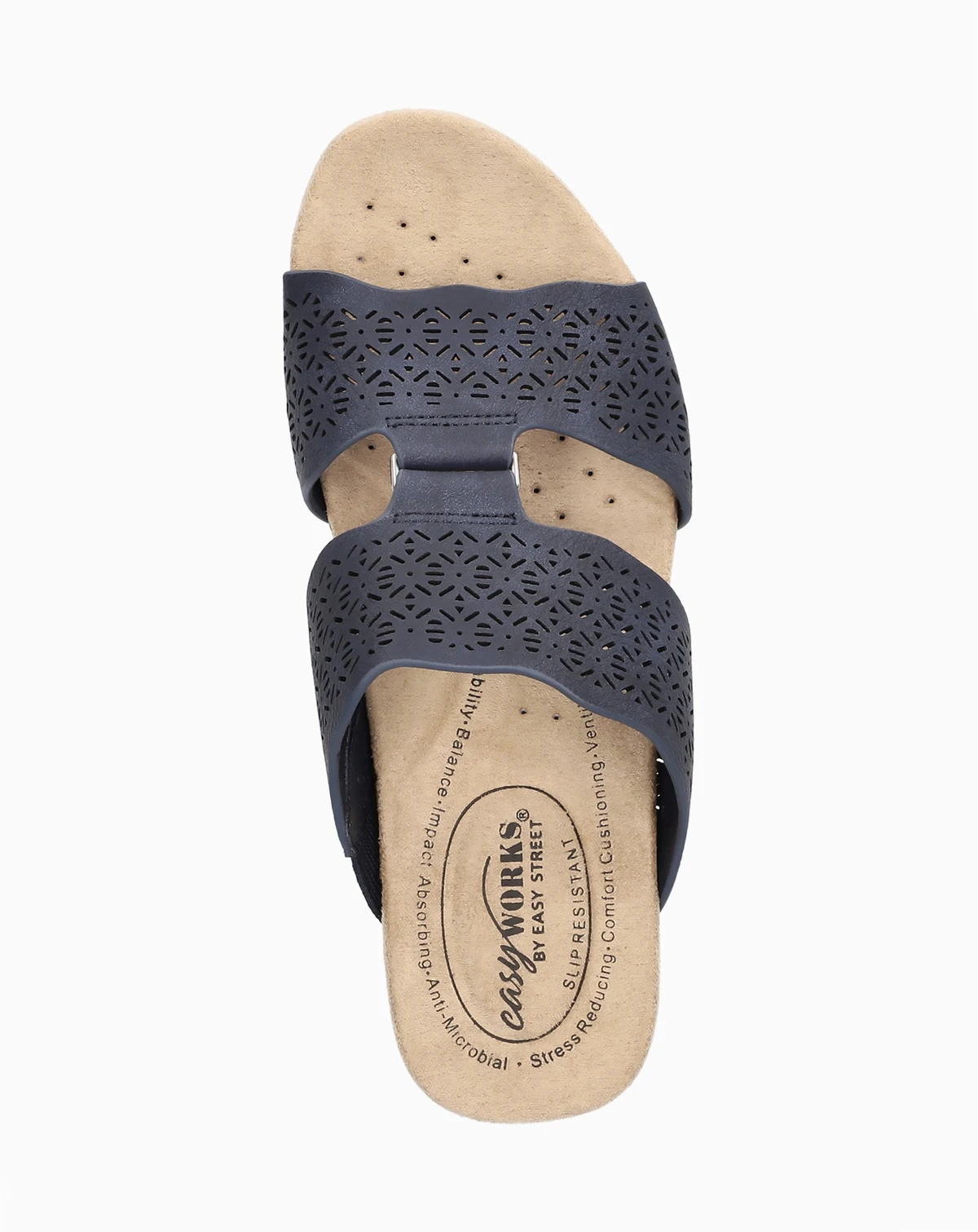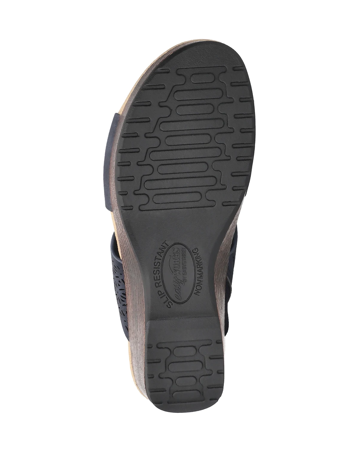 Step into summer in style and comfort with the Rin slide wedge sandal from by Easy Works Street Series. Its perf upper with ornament detail offers a beautiful design that is sure to get you compliments.