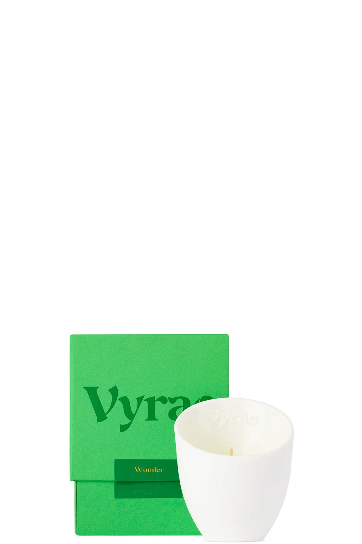 Mineral, coconut, and rapeseed wax candle. Features fragrances of Mediterranean lemon, mandarin, orange flower absolute, jasmine, vanilla, sandalwood, and musk.