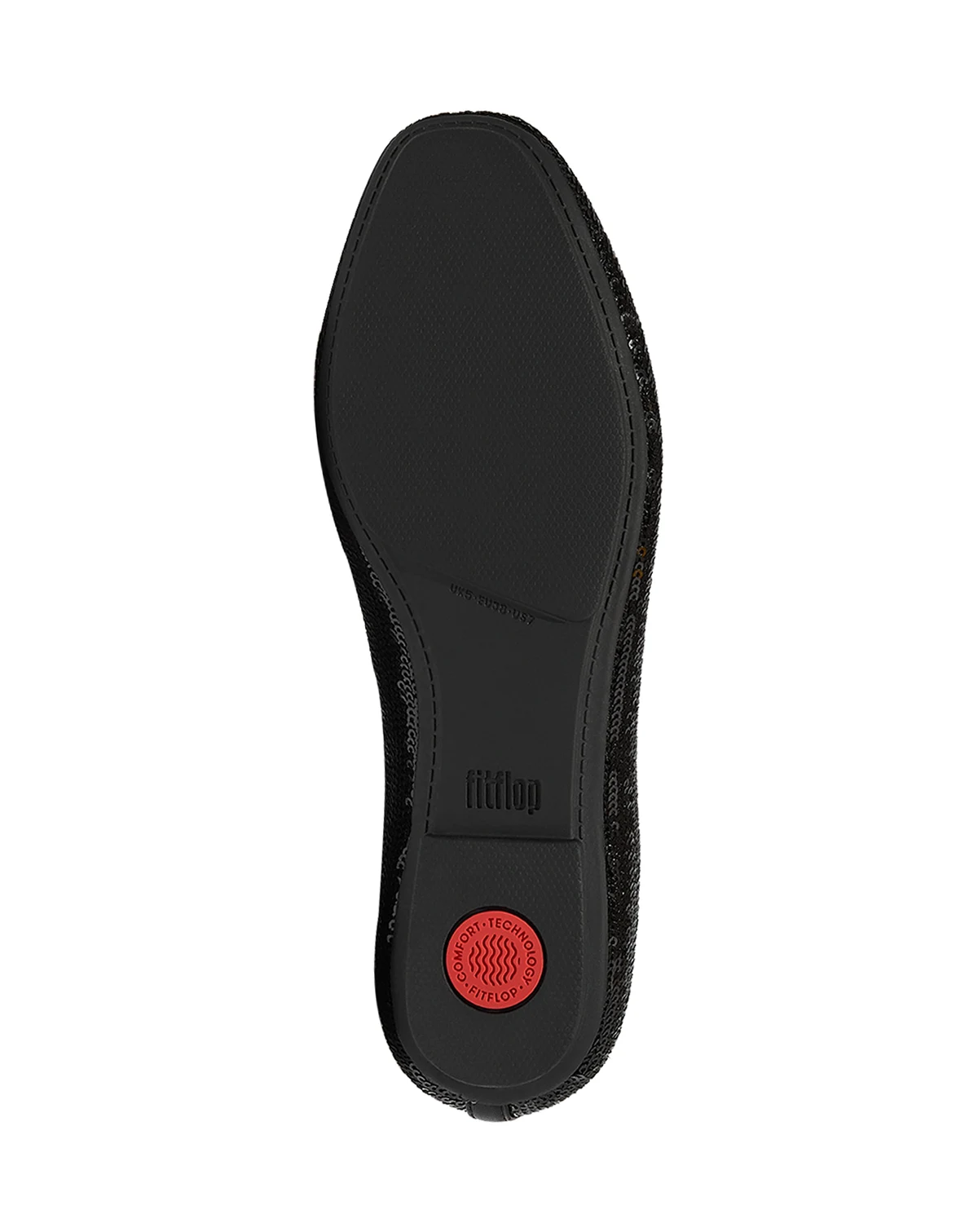 Combining classic ballet-inspired style with modern comfort technology, these FitFlop Delicato ballerinas feature luxurious sequin embellishments that catch the light indoors or out. The biomechanically engineered Micro wobbleboard™ midsoles provide exceptional cushioning and support, working with your body to optimize natural alignment and ensure all-day ease.