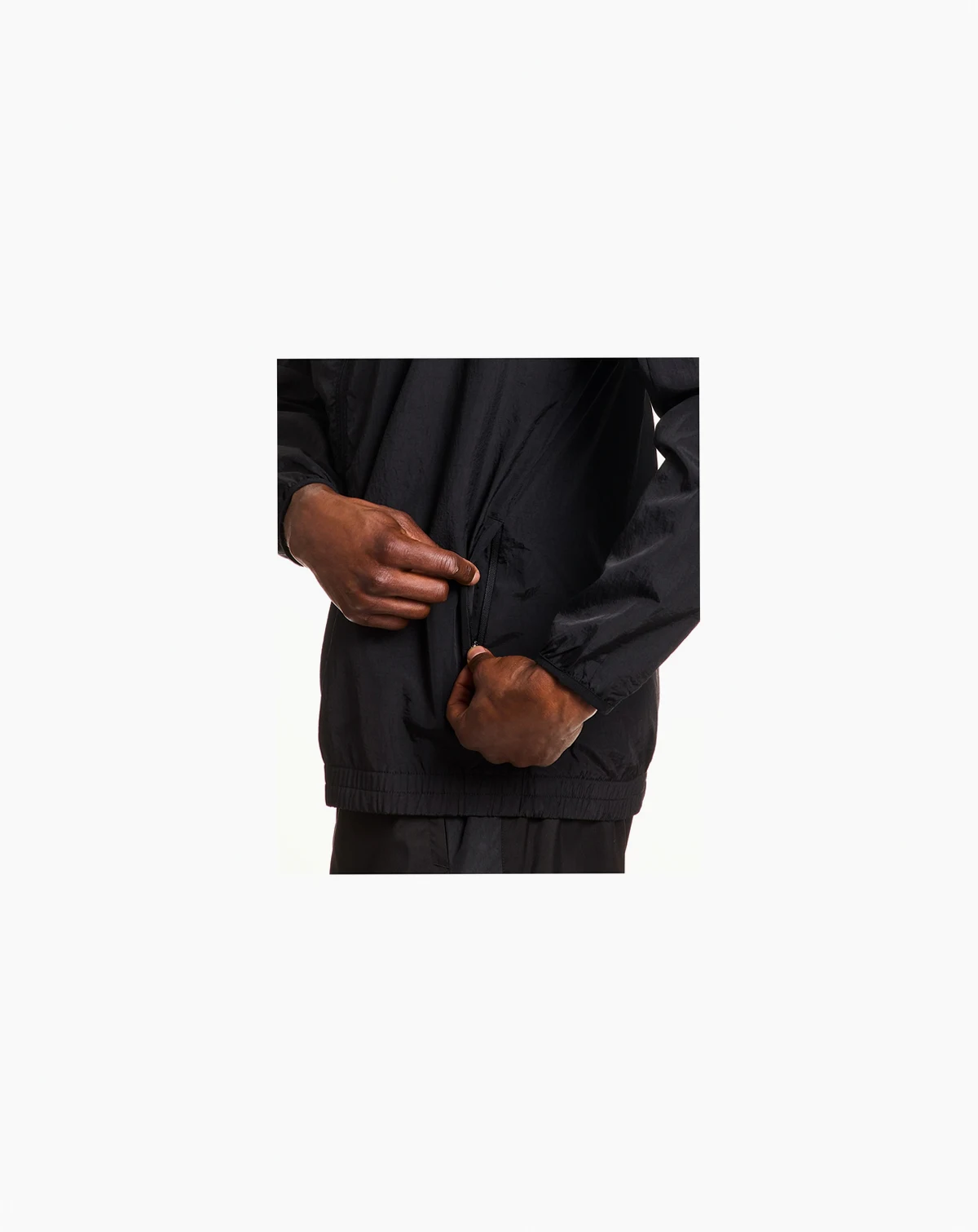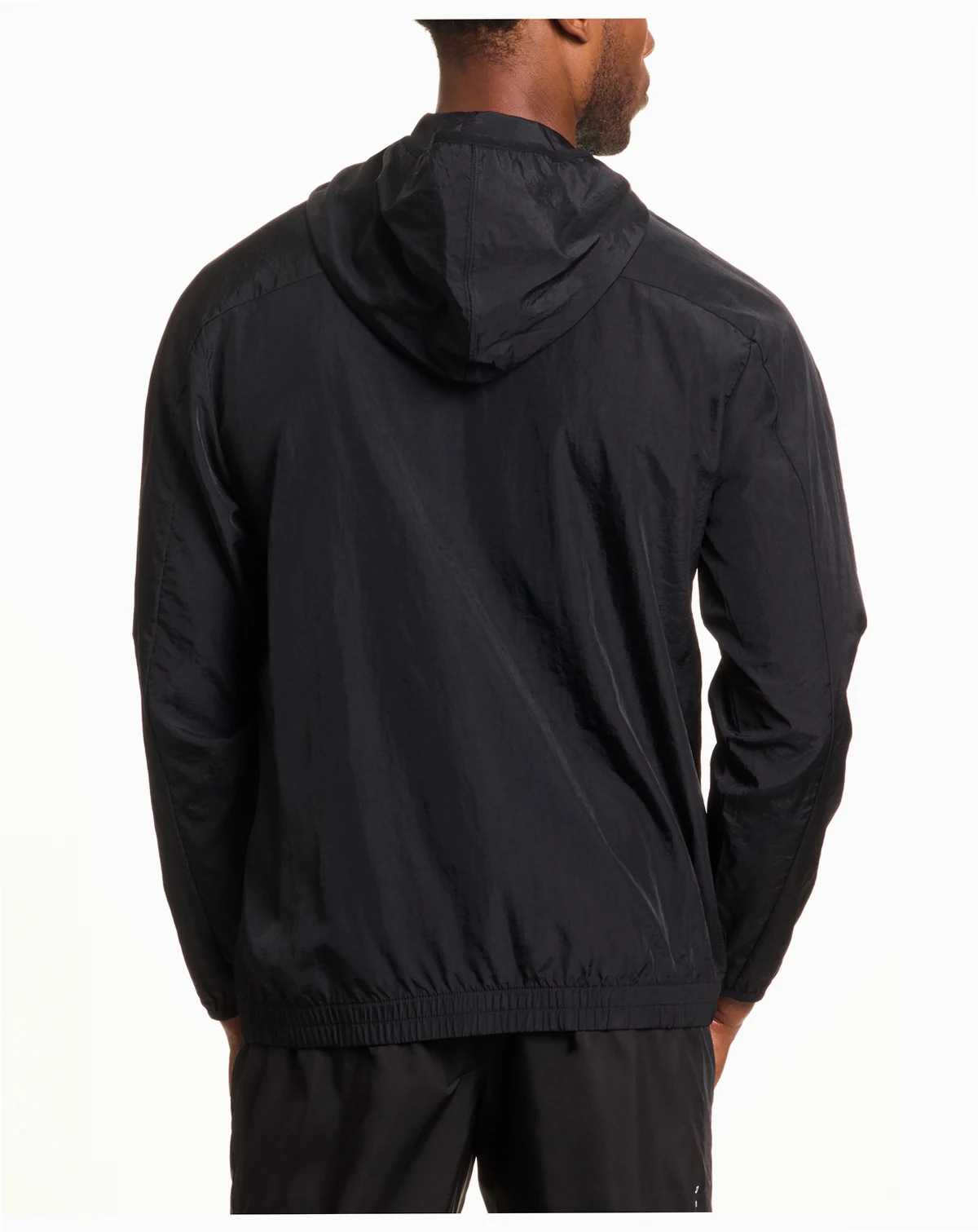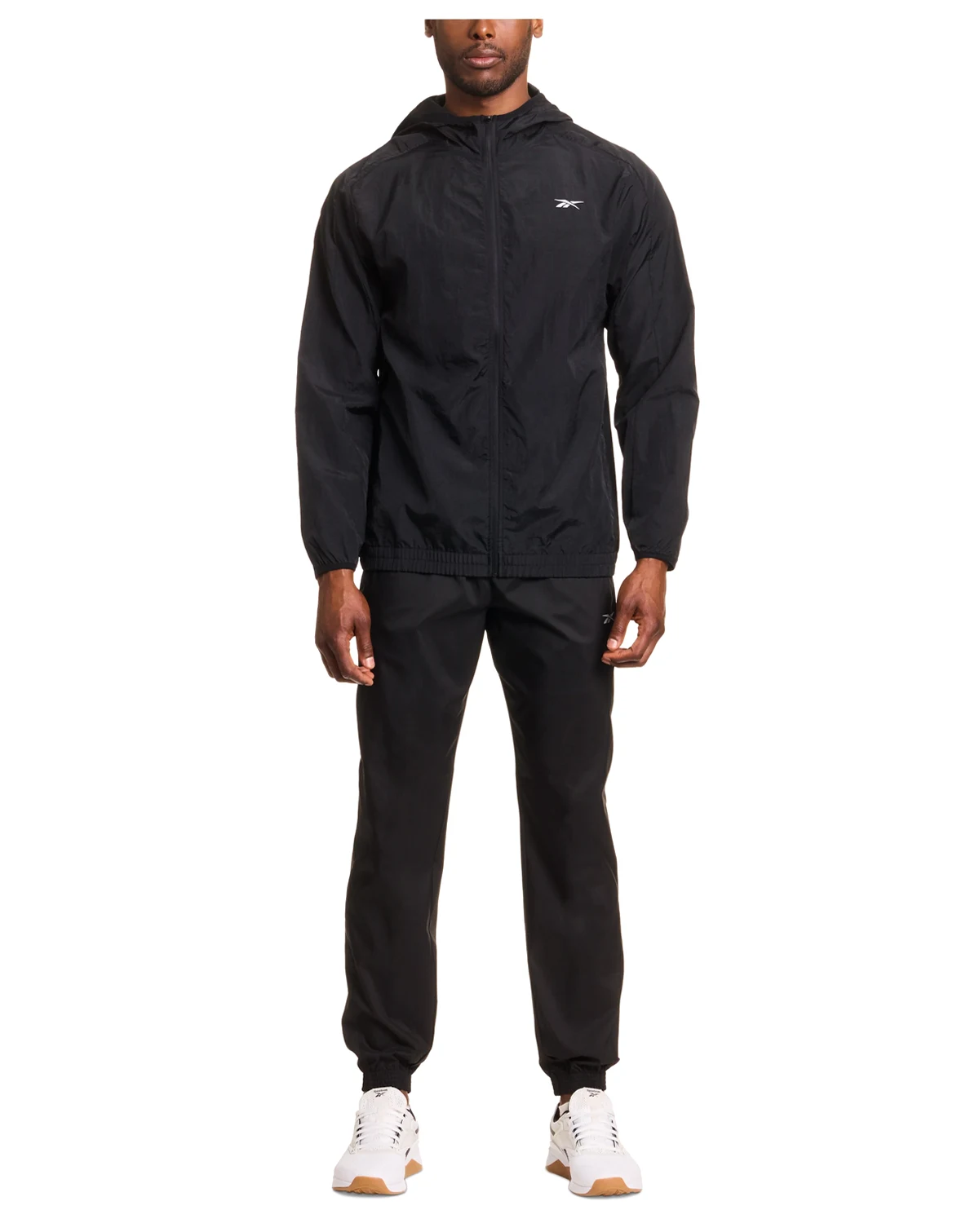 A crinkled nylon effect gives this Reebok track jacket a modern edge, while the hood makes it appropriate for versatile weather.