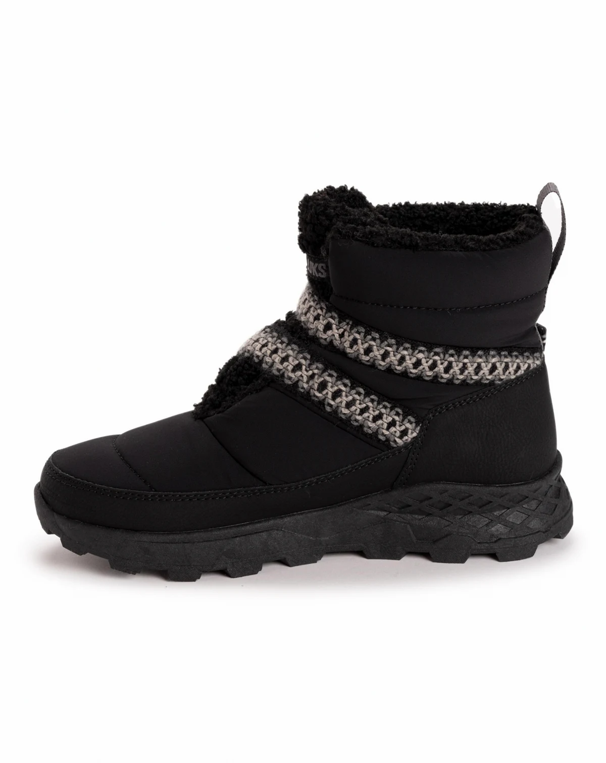 Nothing says warmth, style and comfort like Muk Luks Women's Wren Boots in the winter. You'll get a fashionable upgrade from the quilted nylon hi-top, faux-fur lining, metal taping and stitching details throughout. Pull on these boots and envelop your feet in warmth thanks to the signature Muk Luxe lining and Memory foam.