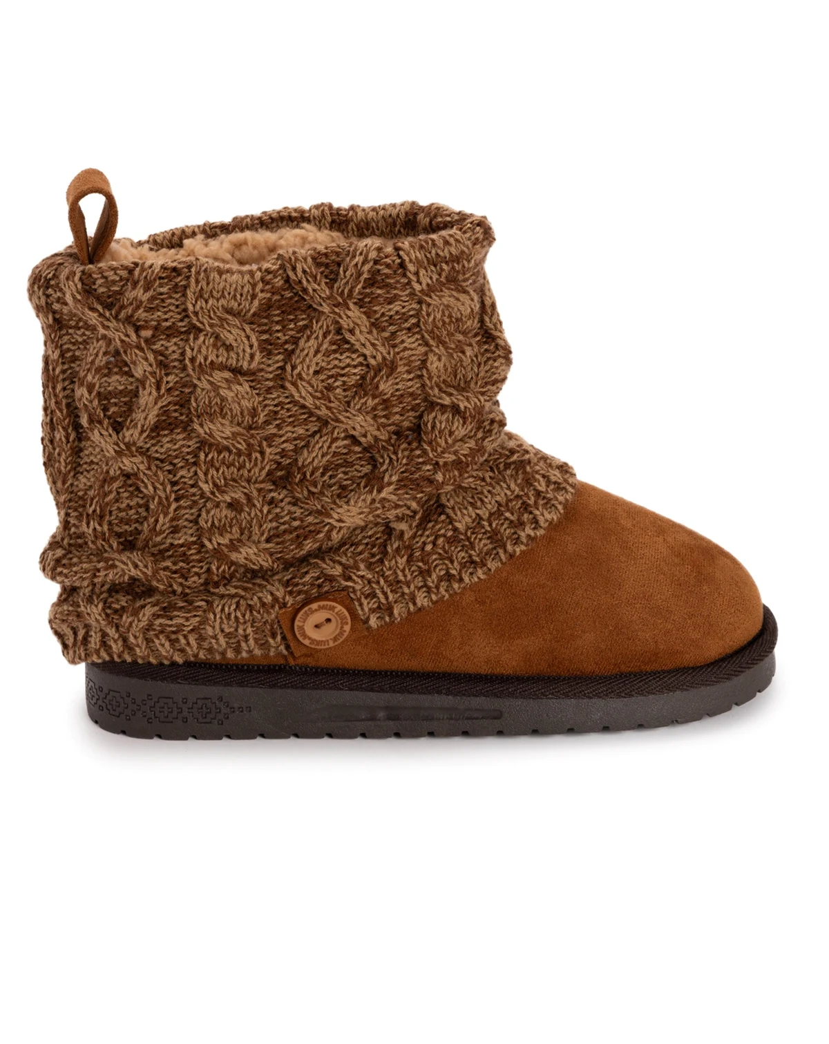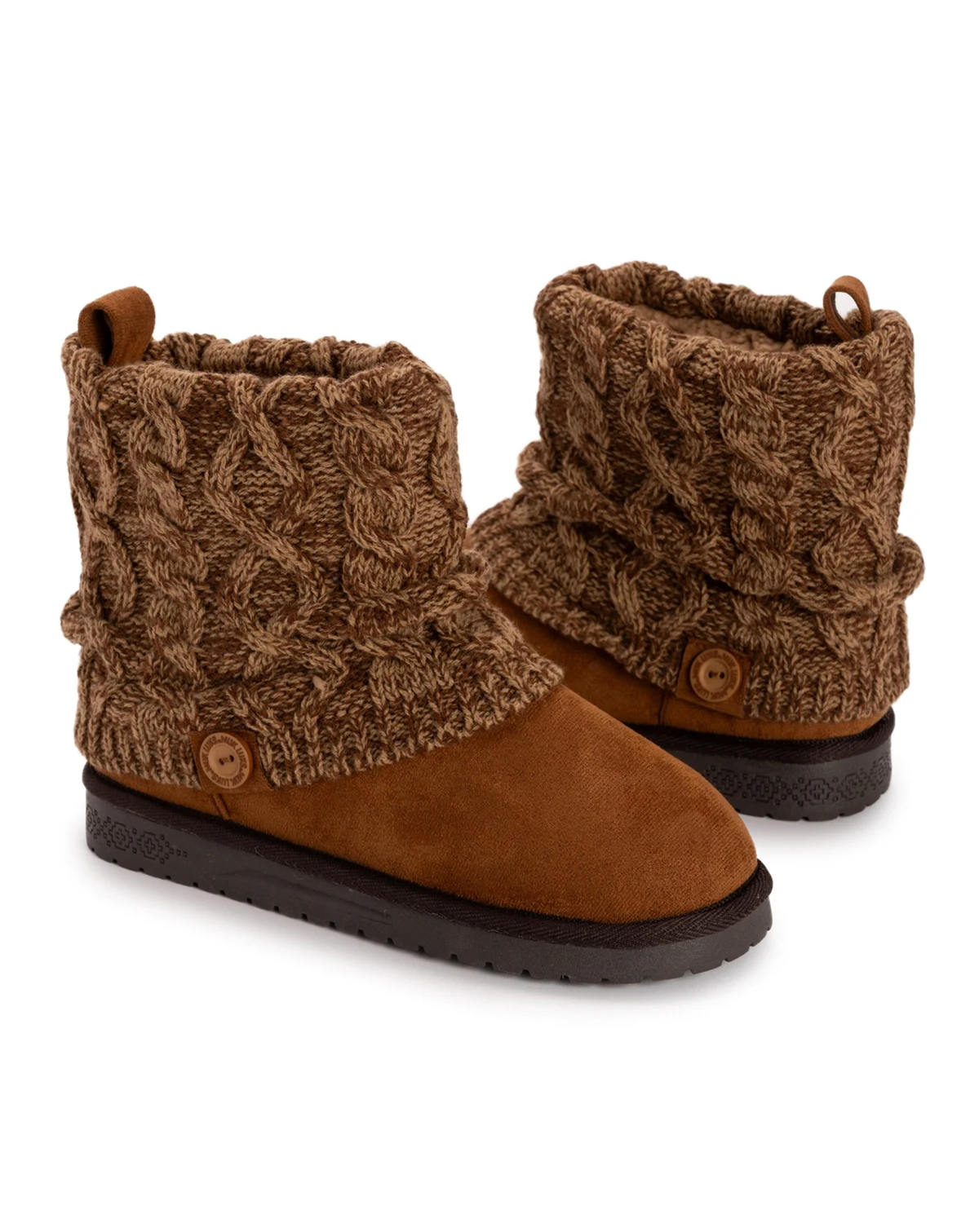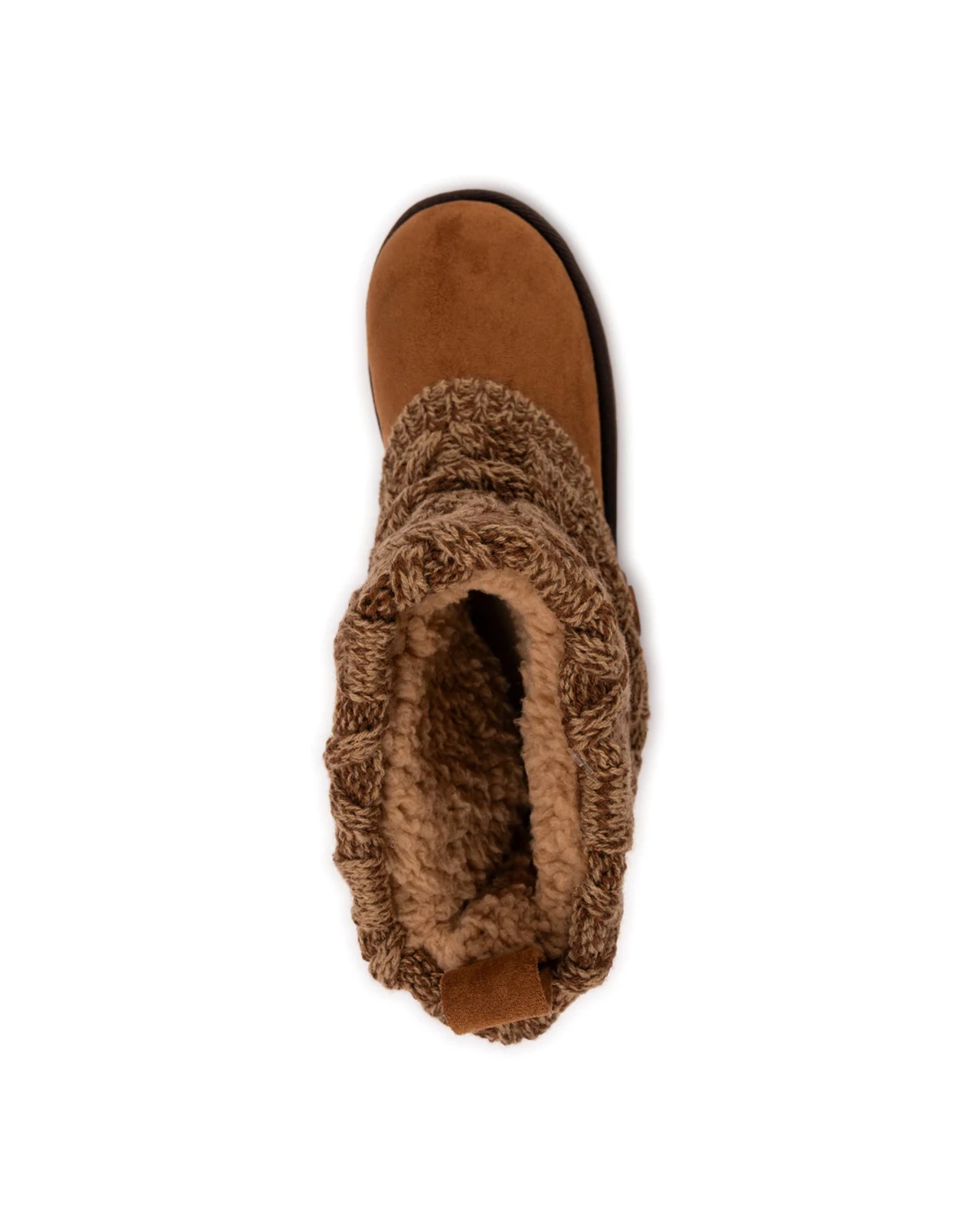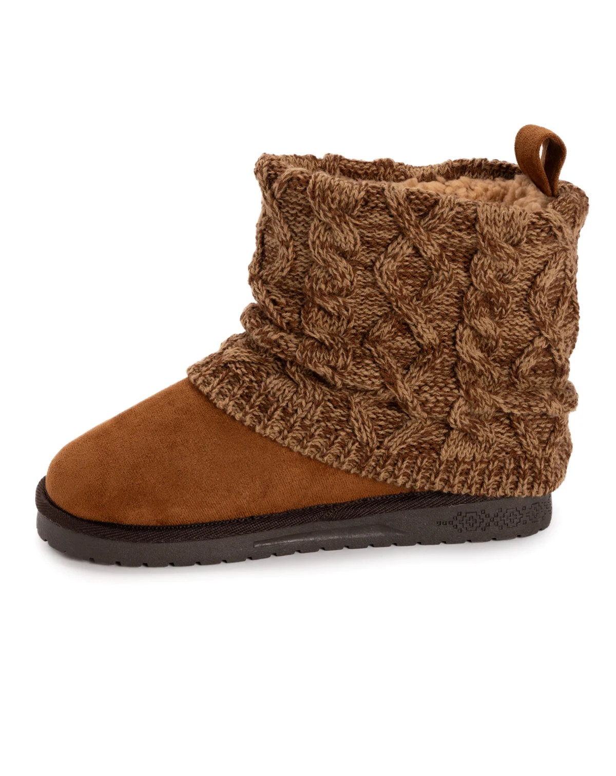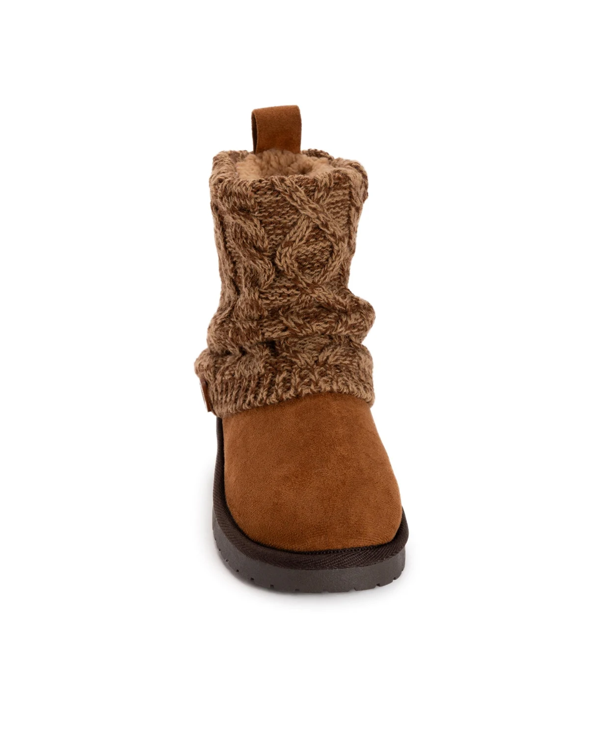 Tackle cold weather this season with Essentials by Muk Luks Women's Laurel Boots. A classic ankle bootie with a decorative knit overlay and pull-on tab lets you slip into the plush comfort of these casual booties with ease.