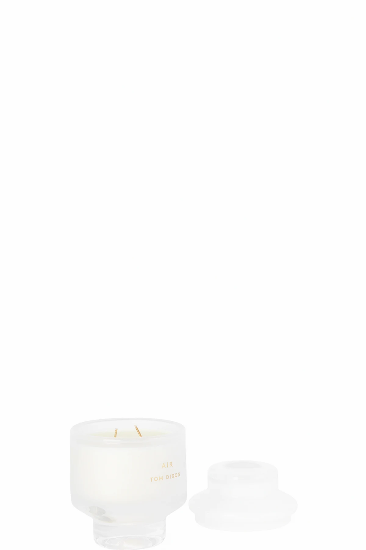 Wax candle in Elements Air. Fragrances feature neroli, pink pepper, and orange flower. Glass vessel with lid. Logo printed in gold-tone at face.