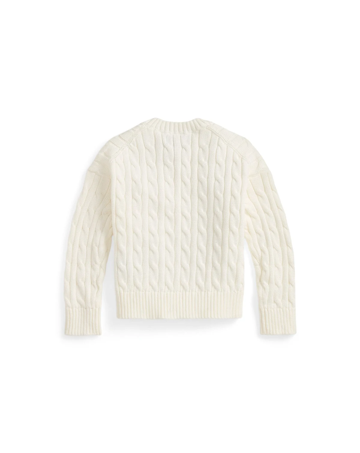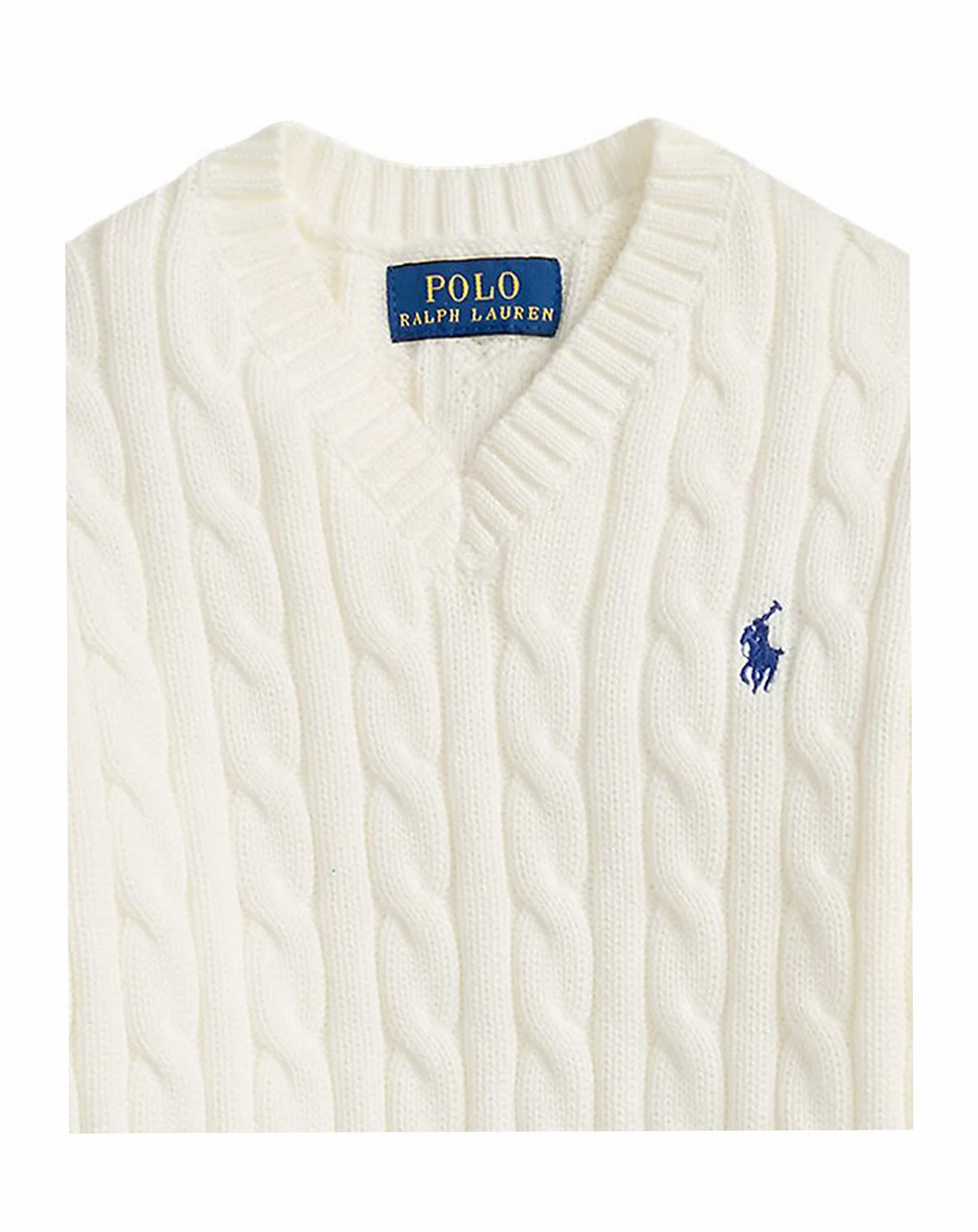 Wrap up in classic charm with this Polo Ralph Lauren sweater, featuring a cable-knit pattern and V-neck for timeless style. Embroidered signature details lend a polished, preppy finish to this soft layer.