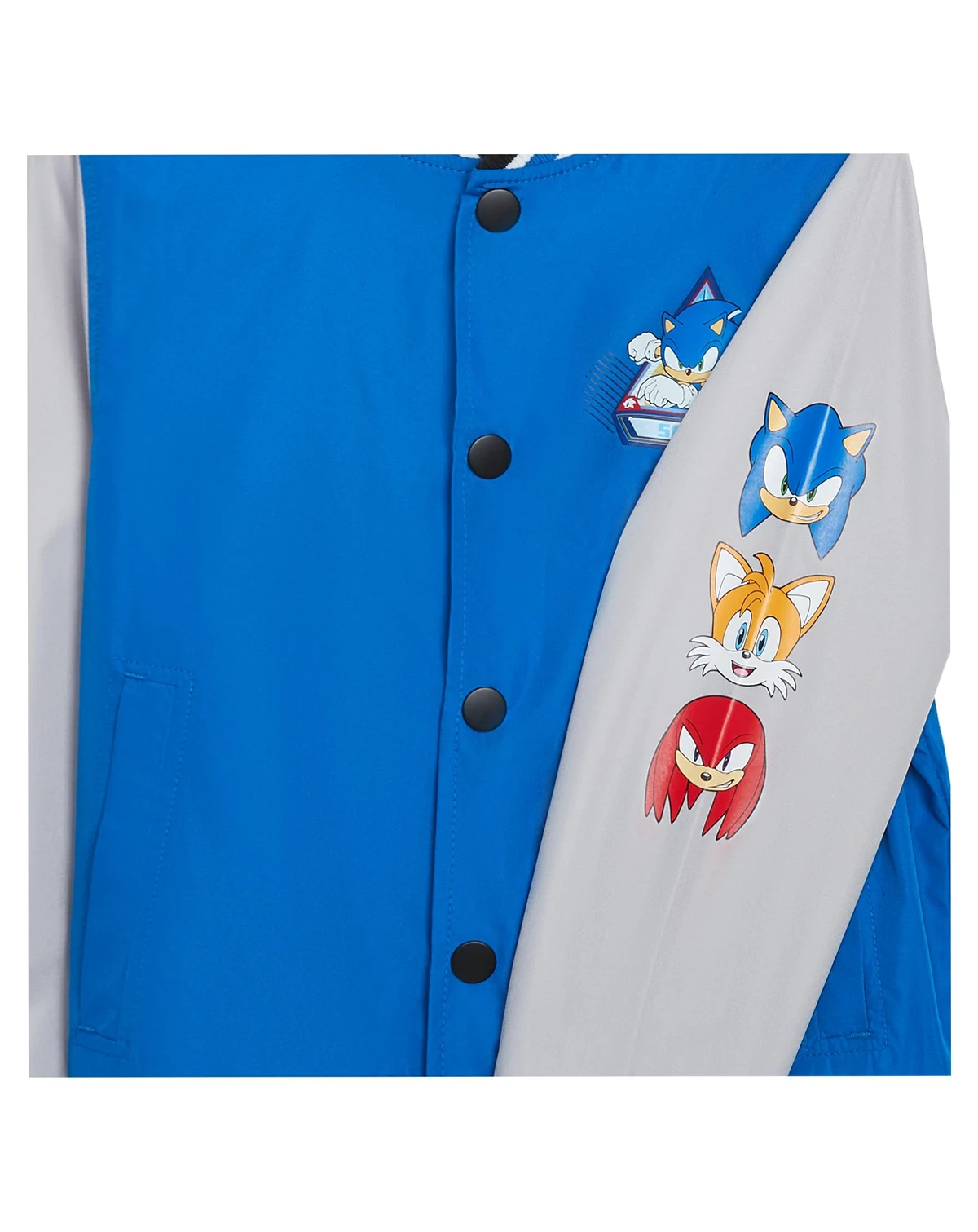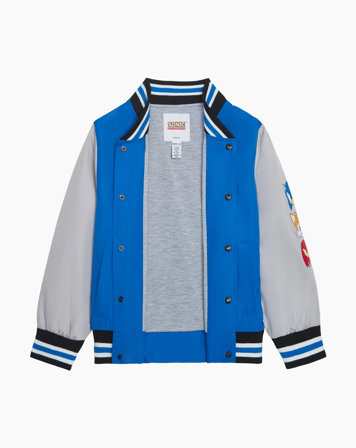 The SEGA Sonic the Hedgehog Boy's Varsity Jacket is a fun piece of fan merchandise and a practical garment suitable for school, casual outings, and gaming events alike. It combines the comfort and style of a traditional varsity jacket with the energetic spirit of the Sonic the Hedgehog universe.