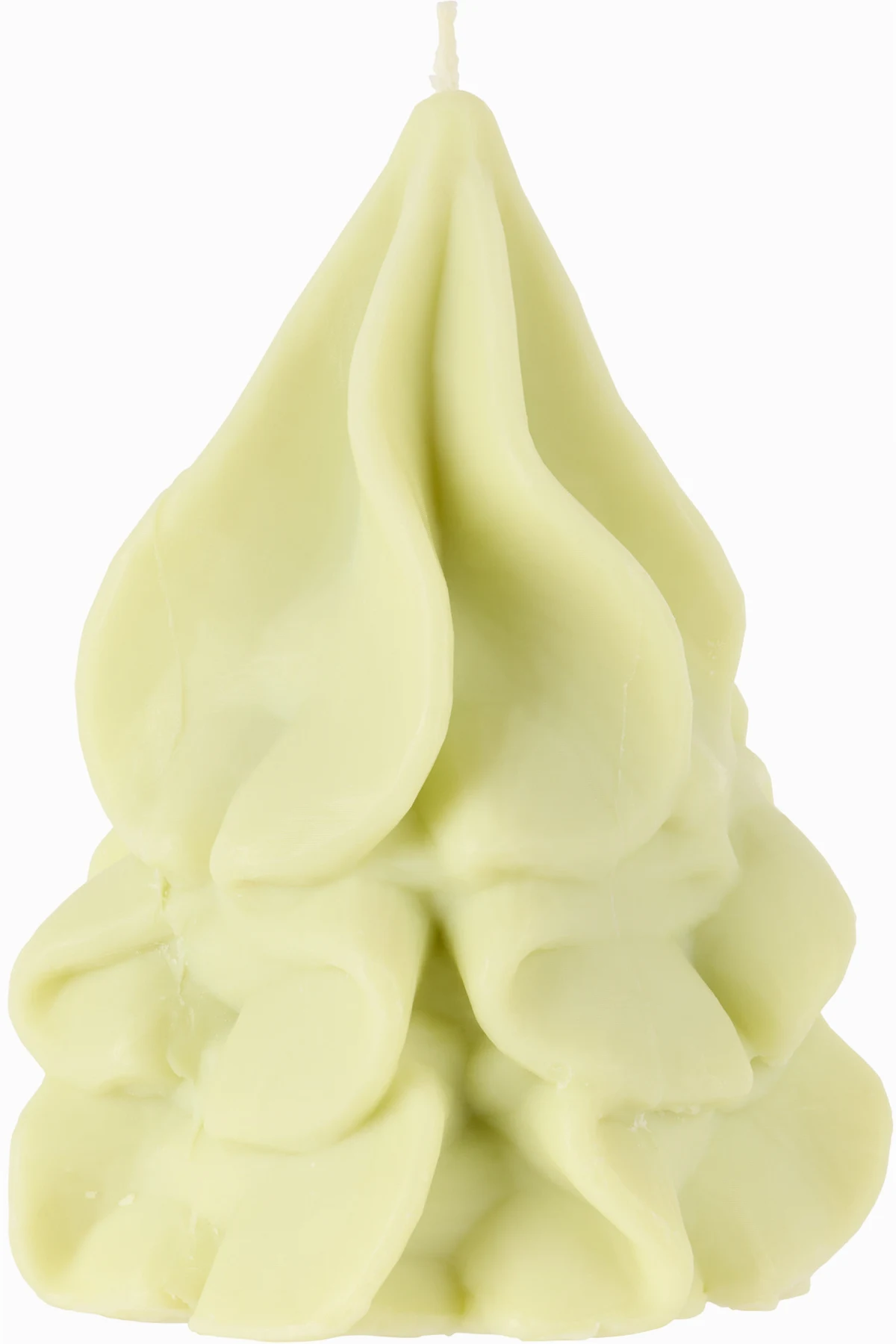 Handcrafted sculptural soy wax candle in green.
