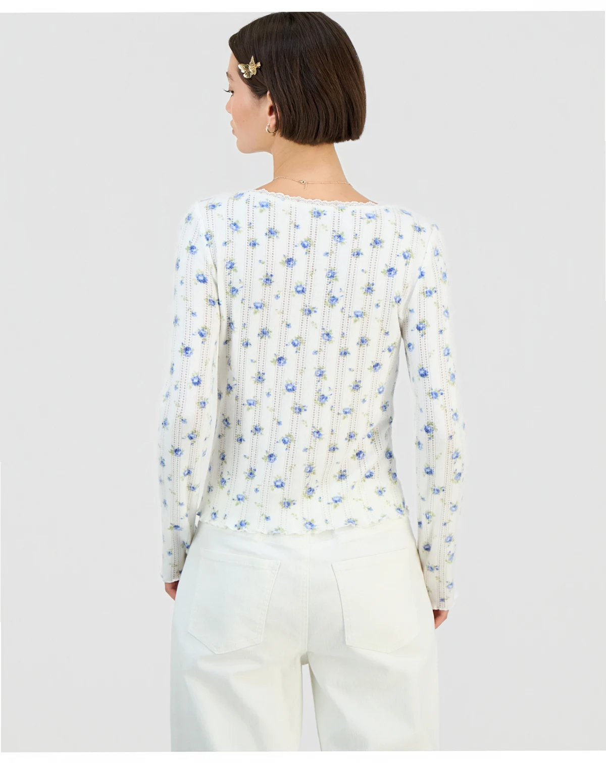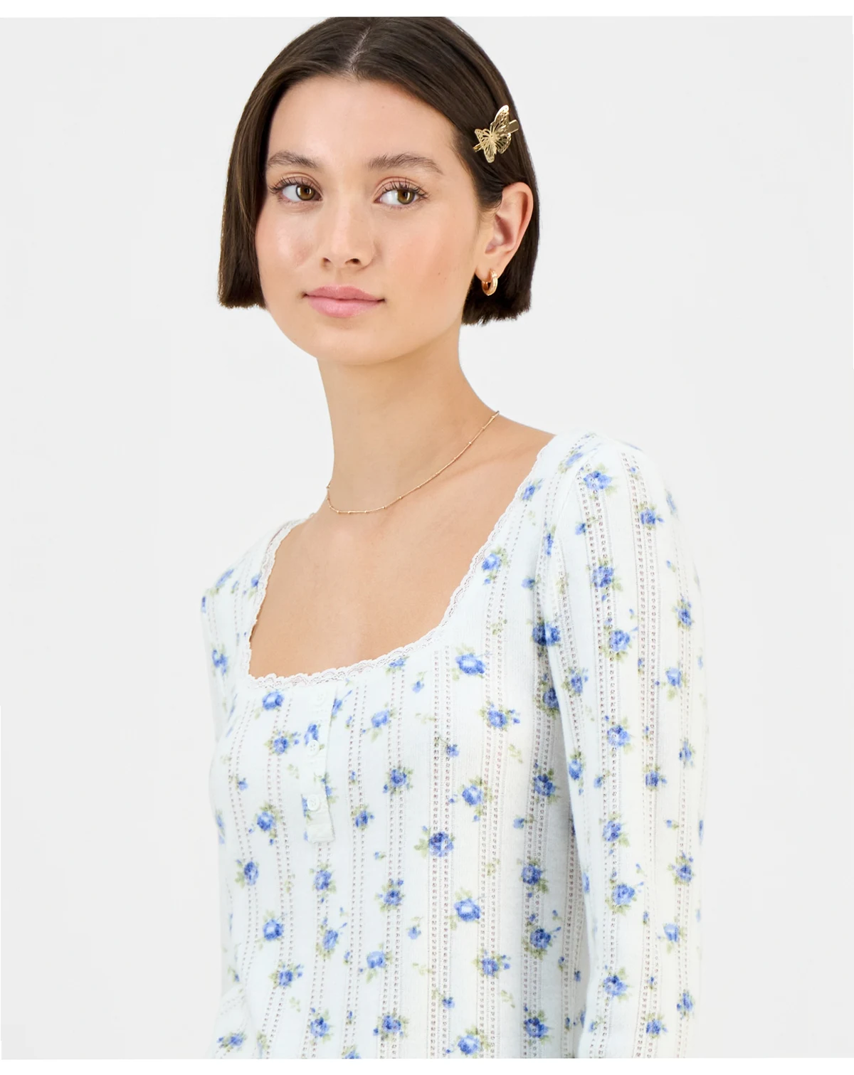 Juniors' Ditsy-Print Pointelle-Knit Top