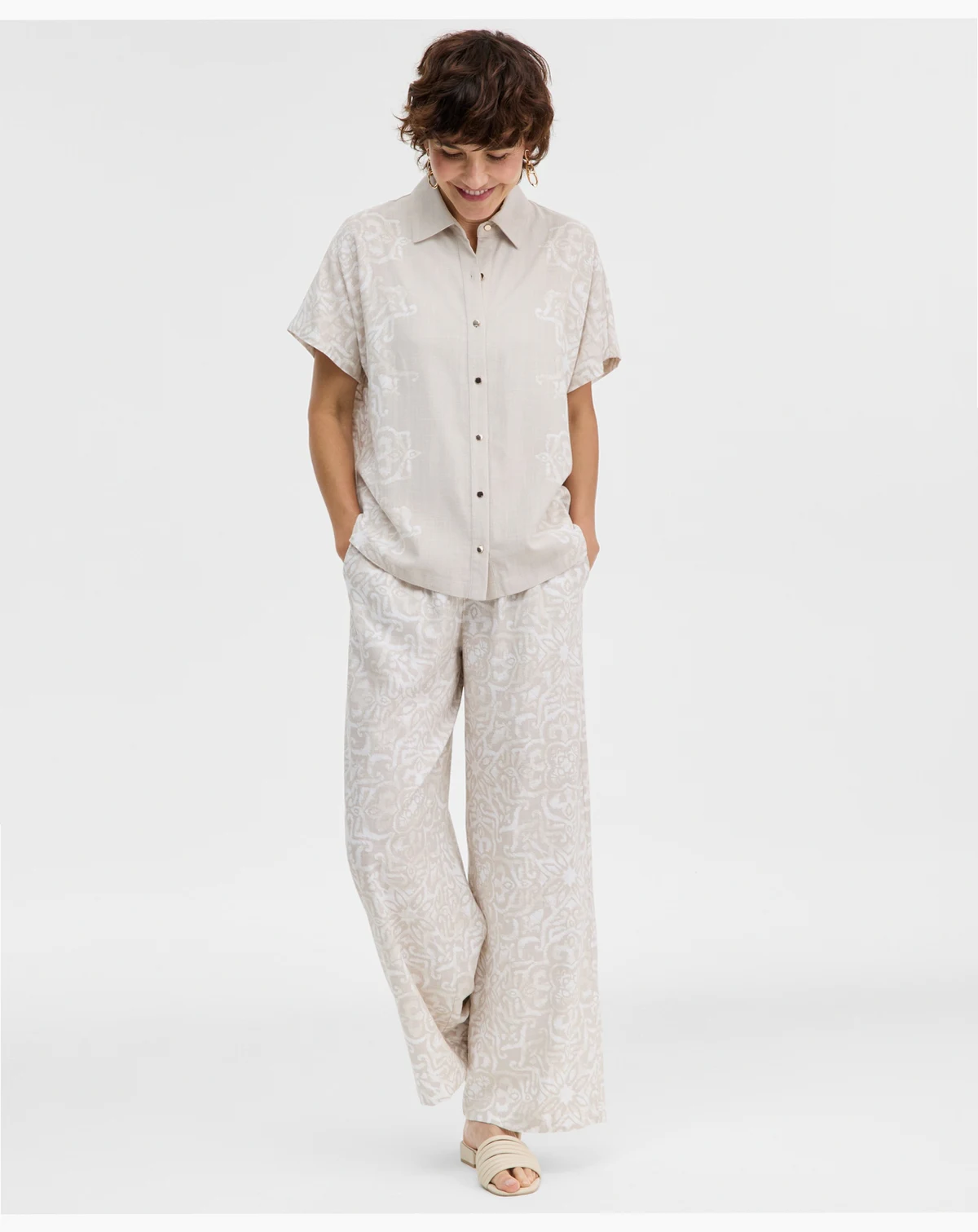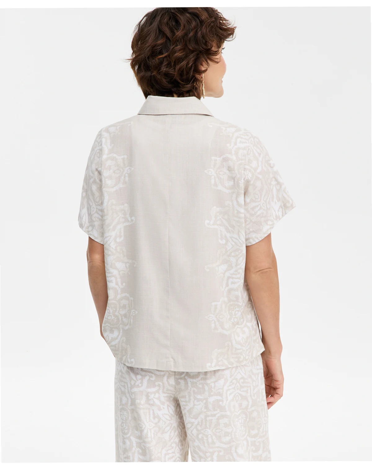 Styled from an airy linen blend, this button-up short-sleeve shirt from JM Collection keeps you cool, calm, and collected on sunny days.