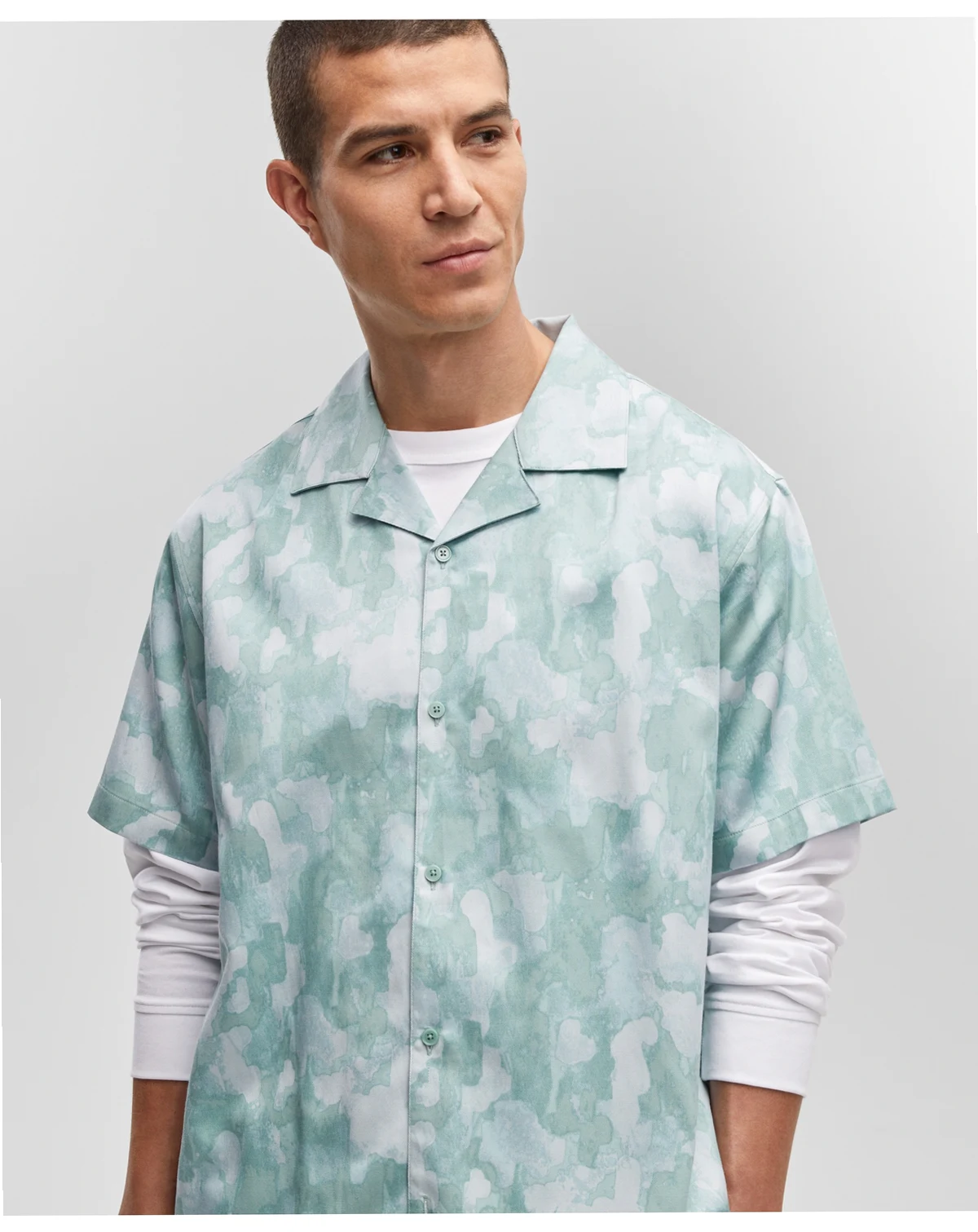 The Mode of One relaxed-fit camp shirt hits at the hip with a straight hem and side slits. ABOUT THE BRAND: Mode of One is designed for the individual who sees style as a powerful tool for self-expression.