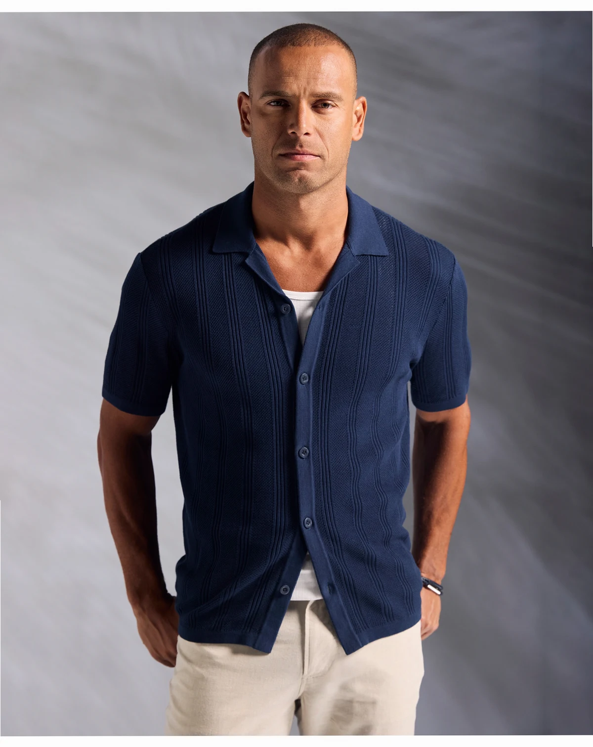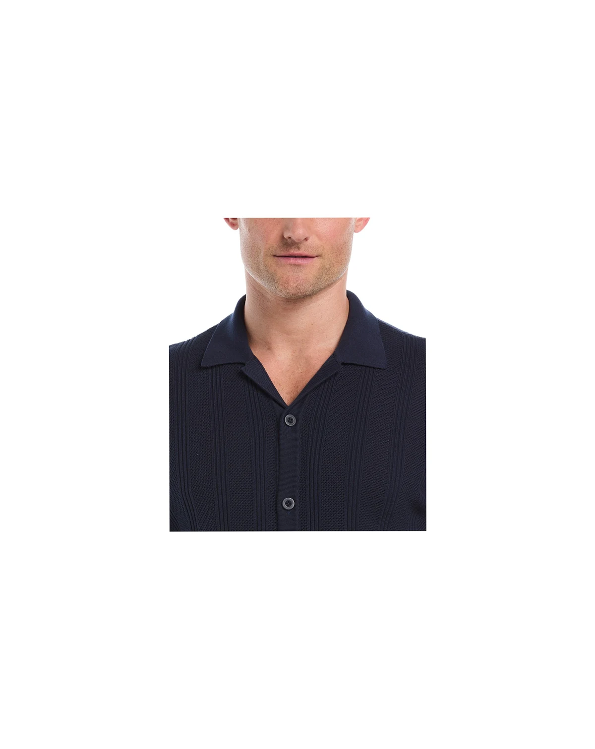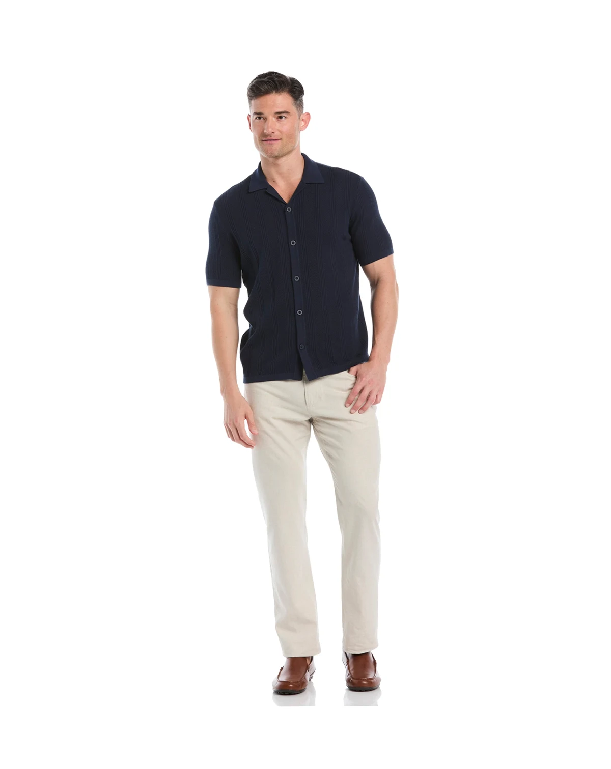 Men's Short-Sleeve Camp-Collar Sweater Button-Front Shirt
