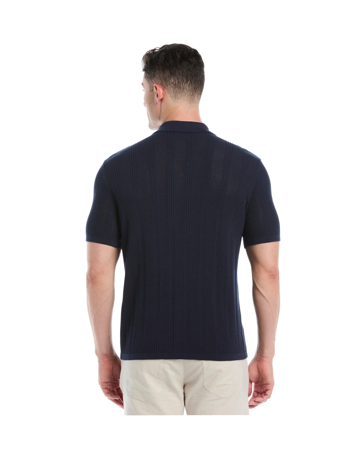 Go for a classic style that doesn't compromise on comfort with this short-sleeve, mesh-striped sweater from Cubavera.