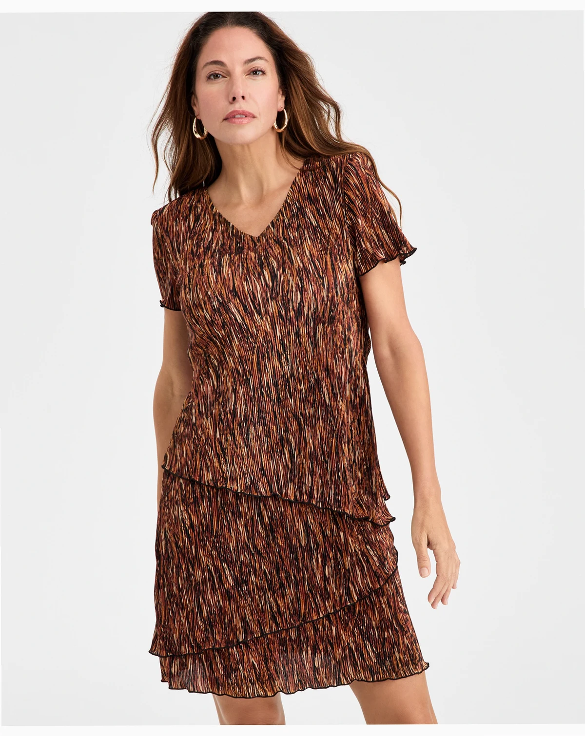 Look absolutely stunning in this women's sheath dress from Connected, featuring tiered ruffles that add a playful and elegant touch.
