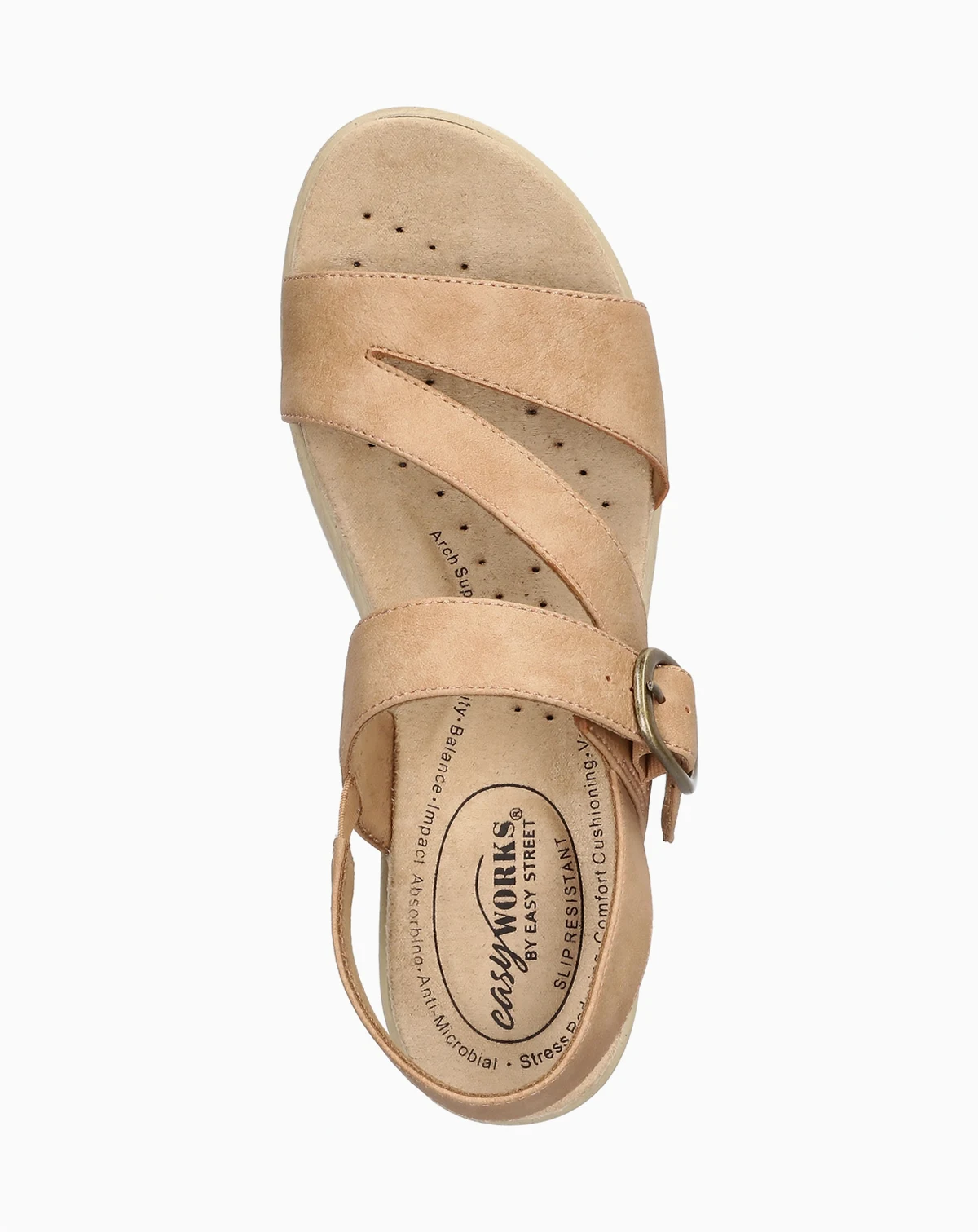 Elevate your style and step confidently with the Marnina slingback block heel sandal by Easy Works Street Series. The contemporary design offers an asymmetrical multi-strap design that adds fashion. Comfort meets sophistication in every step.