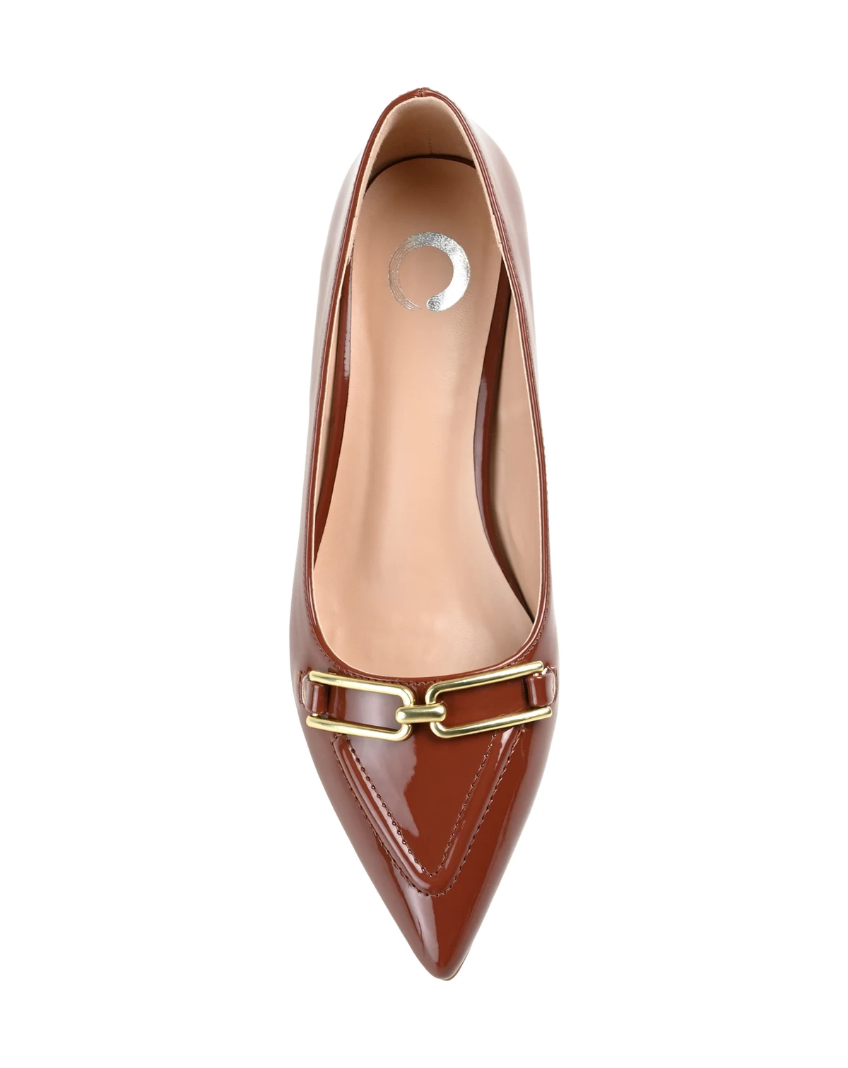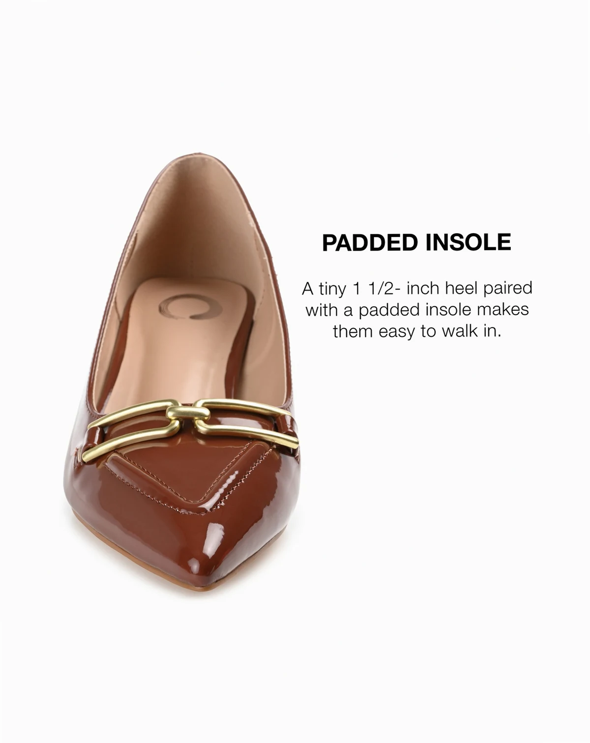 Our Rumi heels from Journee Collection are as effortless as they are chic with their slip-on silhouette, patent luxe faux leather, and hardware detail. As a bonus, their padded footbed will have you walking around in comfort.