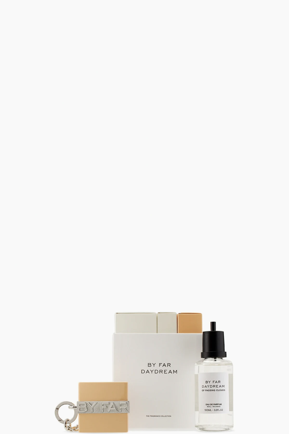 Eau de parfum spray refill with musky scents. Curb chain and leather bracelet with refillable charm included.